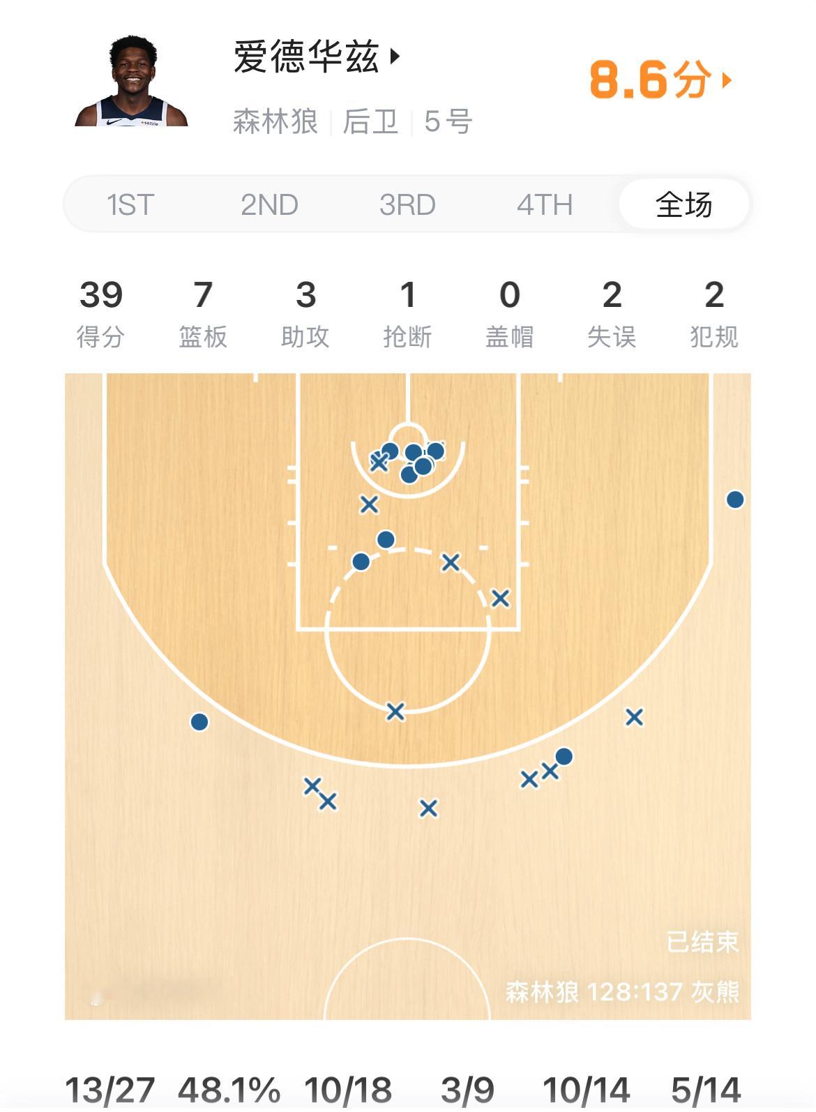 残阵灰熊暴打森林狼,华子空砍39分,这队还有救?华子39分空砍,森林狼这病根子不治,西部第五坐不稳森林狼输得离谱!残阵灰熊缺6大主力,7人上双轰137分,愣是把西部第五按在地上打,爱德华兹拼到39+7也白搭。这哪是偶然失利,分明是球队的老毛病总爆发。你看戈贝尔,9分12篮板杵在内线,防不住灰熊的突分,也接不住传球,跟全队完全脱节,这亿元中锋成了摆设。全队防守更是纸糊的,让灰熊投出46%的三分命中率,19记三分射穿防线,所谓的防守强队颜面尽失。华子是真能打,末节独砍14分追分,可篮球不是一个人的游戏。森林狼现在就靠球星硬凿,没体系没配合,领先不会守,追分全靠冲。西部竞争刺刀见红,再这么下去,别说冲前四,西部第五的位置都保不住。芬奇得赶紧调,要么激活戈贝尔,要么改防守体系,再让华子一人扛着走,这赛季早晚栽跟头。nba爱德华兹有心无力森林狼战胜灰熊爱德华兹空砍39分