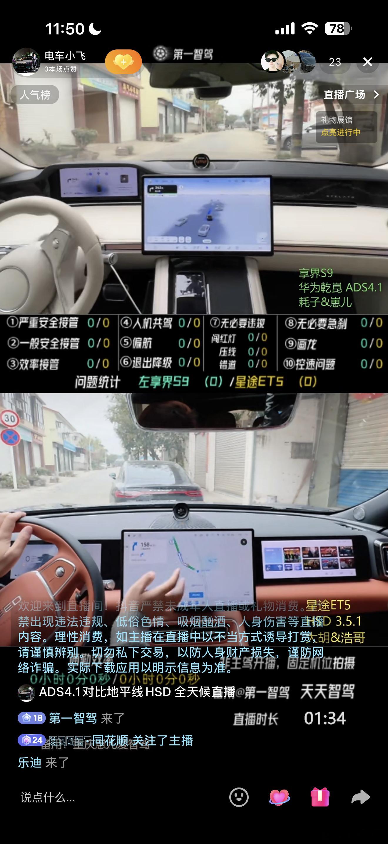 国内智驾高手对决,华为ADS和地平线HSD杀的难解难分,已经播了快5个小时了,今