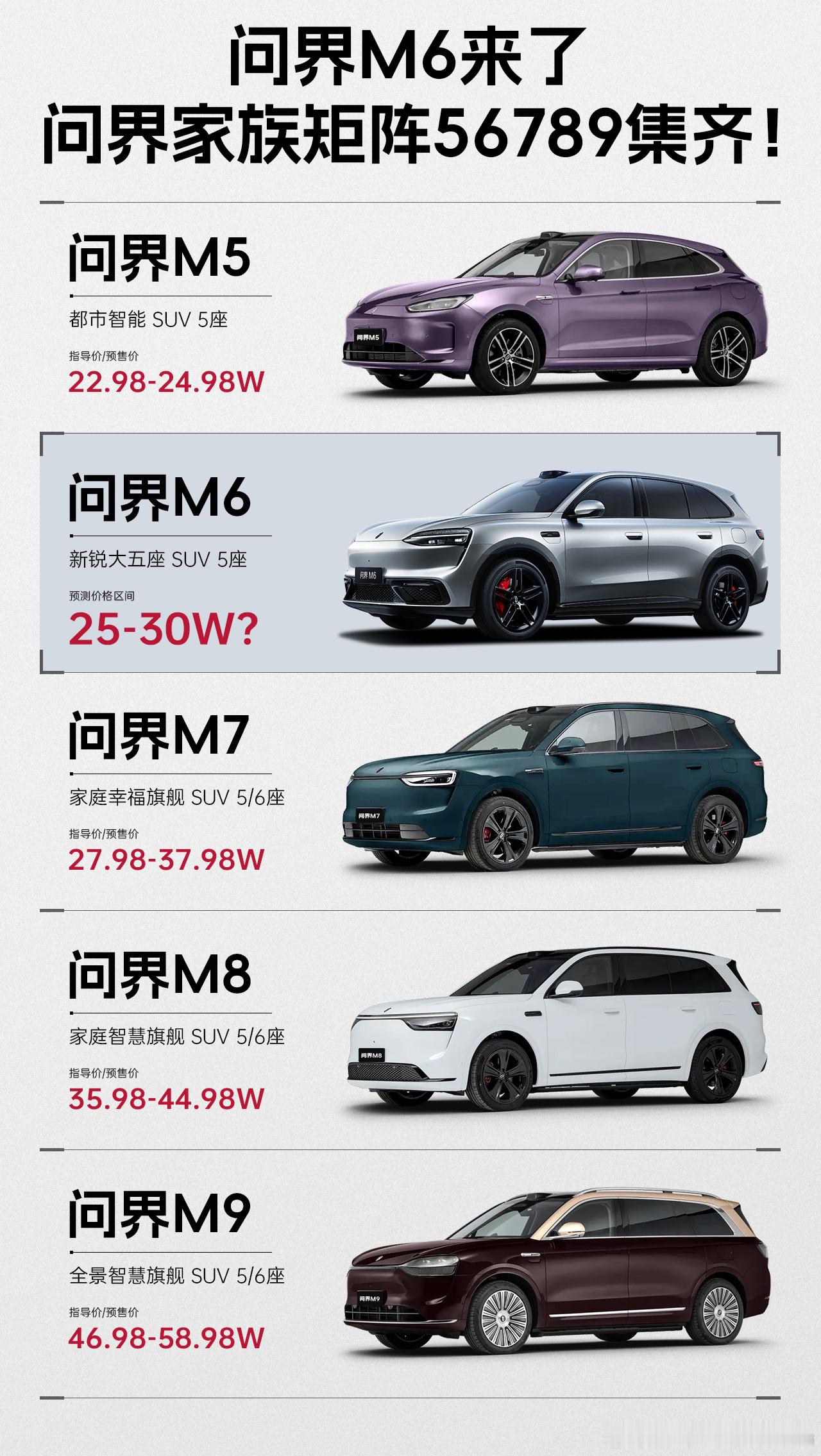 问界现在彻底覆盖整个20-60万SUV大流通市场了。期待4月份的新车正式亮相。余承东首曝问界M6实车问界M6外观曝光