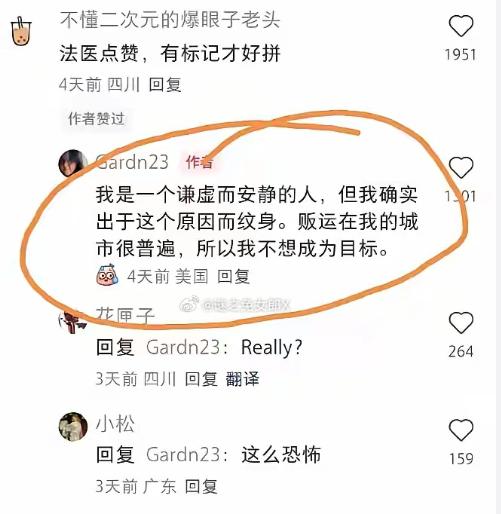 现在的年轻人为什么这么热衷于纹身?因为那是从美国传过来的文化的一部分。 那美国人为什么喜欢纹身,也许这个才是原因: 一位女士说,她纹身只是想让自己更好辨认,因为在她的城市贩卖人口非常普遍,有不一样的纹身,大家才会更容易辨认。 这一瞬间,我对纹身者的偏见消除了。