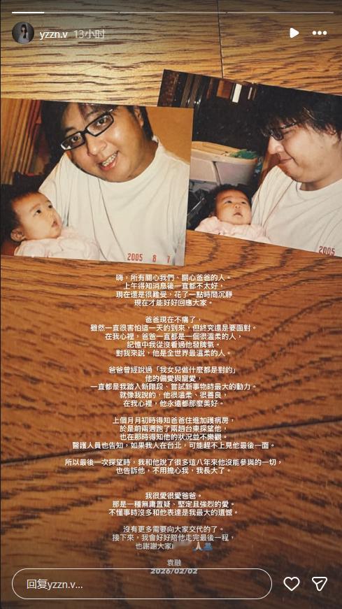 【袁惟仁女儿长文悼念父亲】袁惟仁女儿说以后会继续弹吉他2月2日,台湾知名音乐人