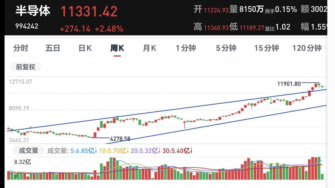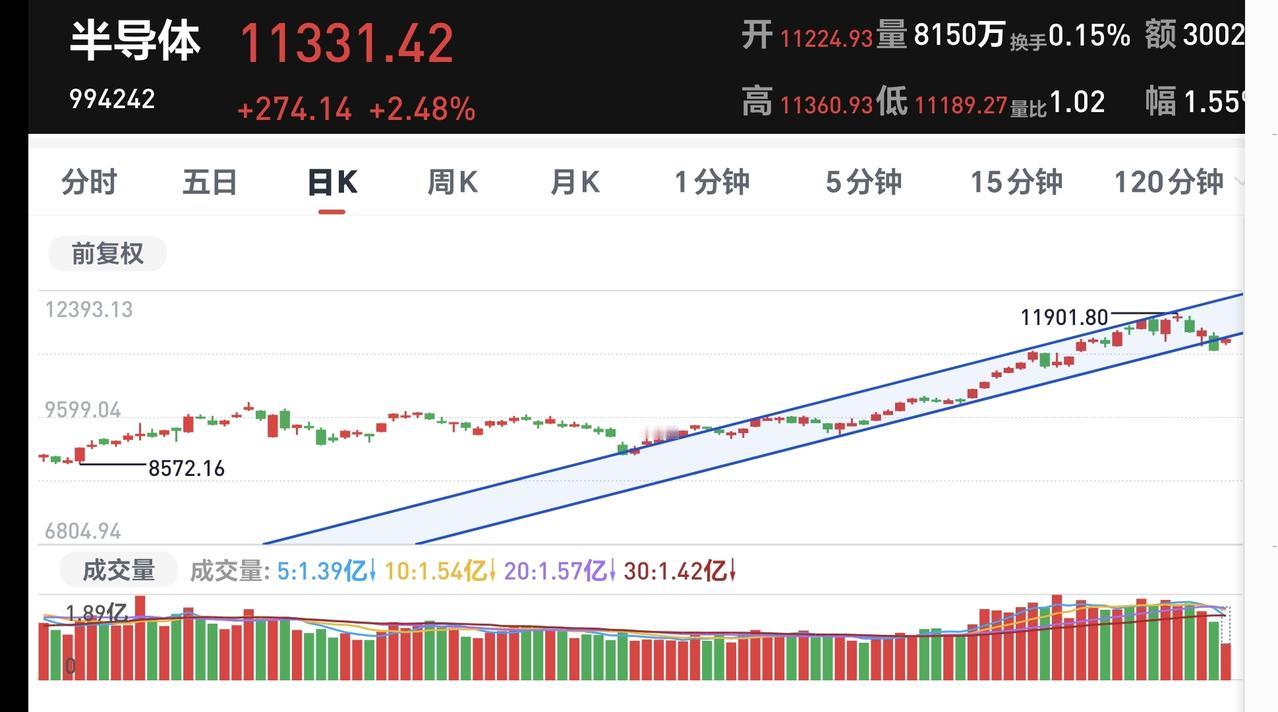 基金:芯片半导体板块应该怎么办 持有的芯片半导体板块基金银河,现在盘中估值下跌了0.95%,但半导体板块现在是上涨的,板块盘中估值上涨了0.39%,这个板块的持有人数在所有板块当中排名第三位,前段时间的时候排名是第一位。 看下面的截图4,这是半导体板块日K线图,昨天下跌跌破了日线级别短期上涨通道的下轨线,今天上涨来到了上涨通道下轨线附近,近期观察是继续上涨重新回到上涨通道内,还是在上涨通道下轨线附近遇阻回落,如果是在下轨线附近遇阻回落,就表明日线级别短期上涨趋势已经被改变,如果是上涨重新回到上涨通道内,就表明这两天的破位是假破位。 看下面的截图5,这是半导体板块周K线图,前段时间上涨突破了上涨通道的上轨线,现在震荡回落到上涨通道上轨线附近,还是处于周线级别上涨趋势中,半导体板块的大方向还是向上,持有的人可以继续持有。 对于这个板块,如果你是短线持有者,你需要注意短期的风险,如果你是长线持有者,你就无视最近的上涨和下跌,因为,距离周线级别上涨通道的下轨线很远,暂时都威胁不到那条线。 今天下午最重要的就是观察成交量,看看能不能从缩量状态转变为放量状态,如果能够转变为放量状态,就说明有资金在反弹的过程中进场,有资金参与的反弹才会有延续性,不然的话,今天的反弹就是一日游,今天下午观察的点位是4039点观察,收盘的时候能不能收在4039点之上。 花一秒钟点赞,花30秒钟评论,就是对我最大的支持,谢谢大家的支持。