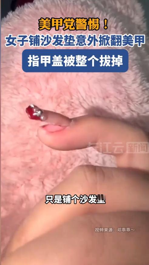 “悲剧还是发生了!”近日,一名女子在家铺沙发垫时,不小心将刚做好的美甲掀翻了,仔细一看才发现自己的本甲被掀开了一半,顿时疼得她眼泪直流。就医后,医生表示只能将整个指甲盖全部拔掉,重新长。网友:隔着屏幕都觉得疼! 美甲是不少爱美女性的日常选择,精致的款式能提升心情,但过长的美甲也暗藏着生活里的意外风险。 据媒体2月3日报道,这位女子刚做了心仪的美甲,在家整理沙发时,指尖的美甲勾住了沙发垫的布料。她下意识用力一扯,没想到刚做的美甲直接掉了,但是指尖处却传来阵阵剧痛。 仔细查看后才发现,刚刚的用力导致自己的本甲被掀翻了一半,到医院就医后,医生表示,这种情况只能将整个指甲拔掉了,然后再重新长出新的。 女子顿时感到可怕极了,但是也没有其他办法,忍着剧痛被拔掉了整个指甲盖。看着拔掉的指甲盖,她真是又崩溃又后悔。再也不敢做这么长的美甲了。 这件事也给所有爱美的女孩提了个醒,追求美丽的同时,一定要兼顾生活安全,过长的美甲不仅影响日常操作,还可能在不经意间造成意外伤害。 信息来源:《美甲党警惕!女子铺沙发垫意外掀翻美甲指甲盖被整个拔掉》长江云新闻