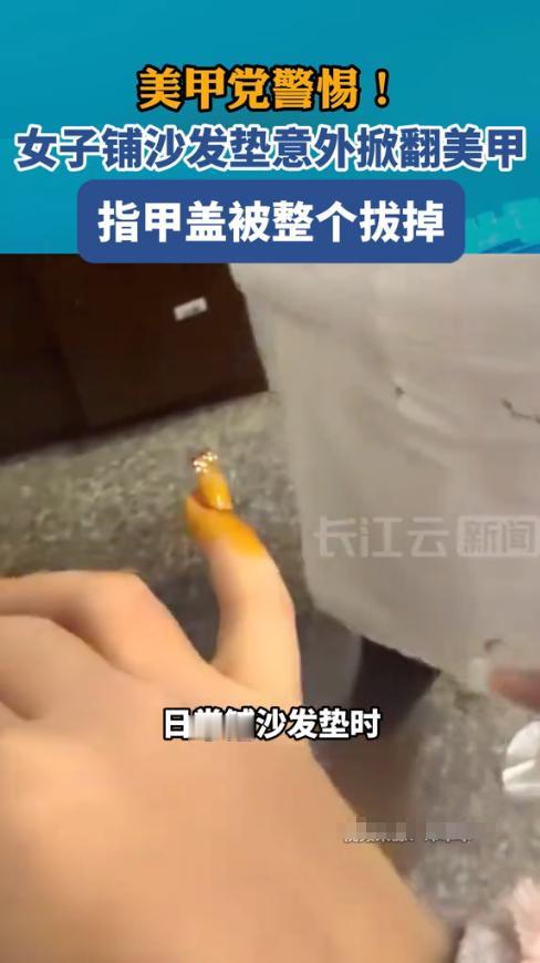 “悲剧还是发生了!”近日,一名女子在家铺沙发垫时,不小心将刚做好的美甲掀翻了,仔