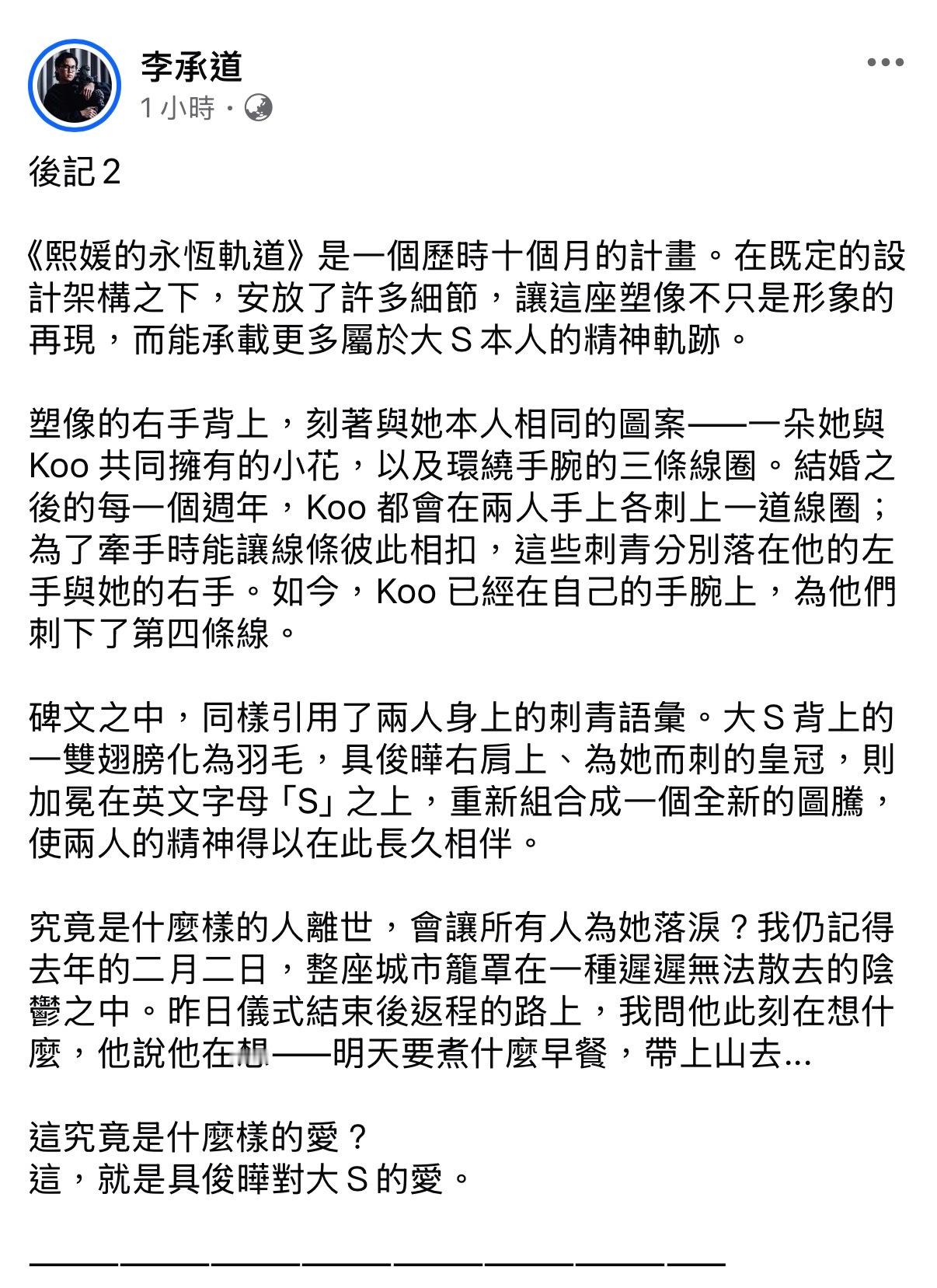 李承道再分享大S雕像 《熙媛的永恒轨道》创作细节!看到刺青了🥺🥺🥺