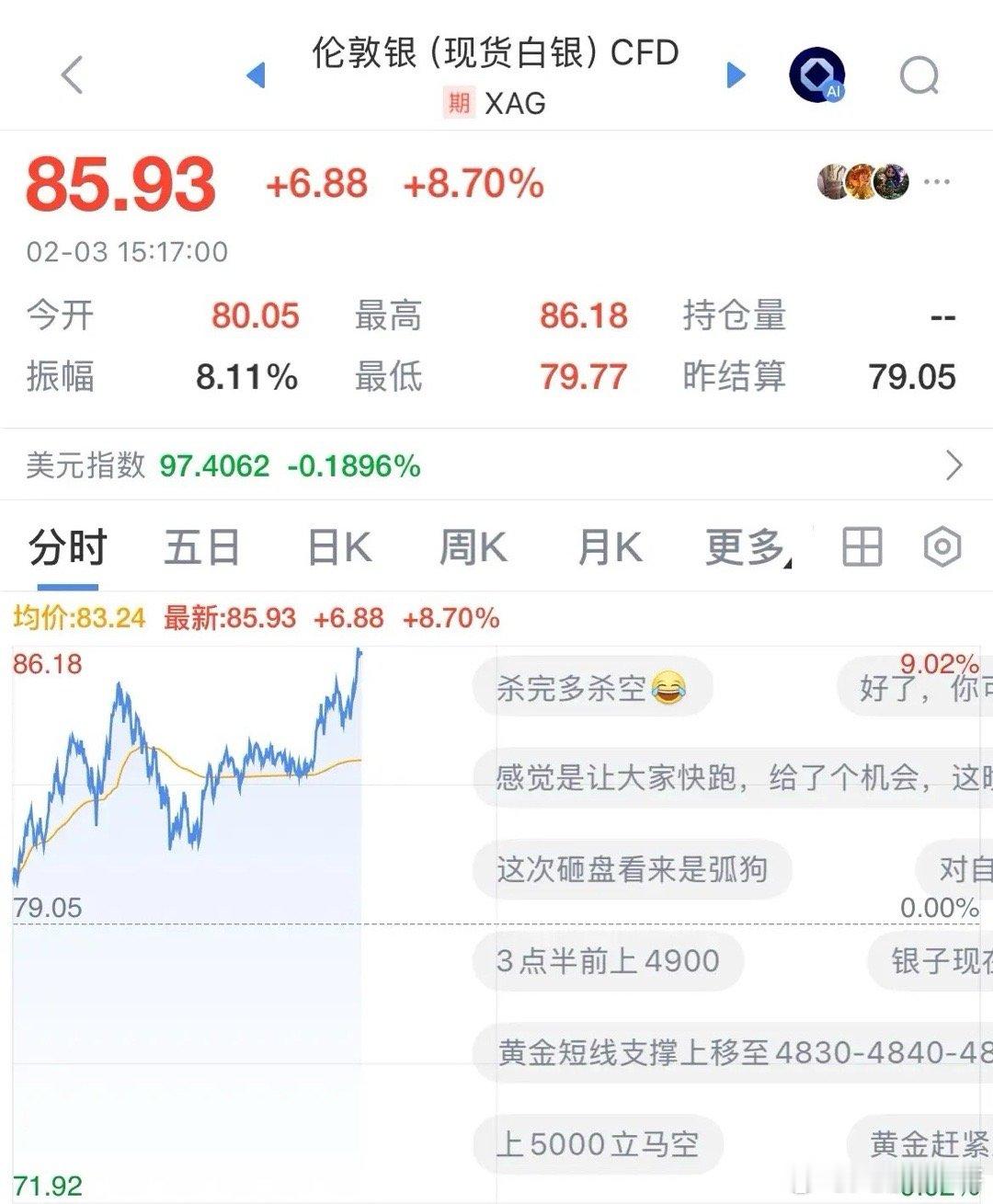 贵金属集体反扑,现货黄金大涨4%,逼近4900美元/盎司,现货白银大涨超8%,重回86美元/盎司,纽约期货黄金已经站上4900美元/盎司,纽约期货白银大涨11%,重回85美元/盎司