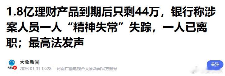 1.8亿理财产品五年到期后只剩44万1.8亿理财资金案人钱两失踪晏秋秋