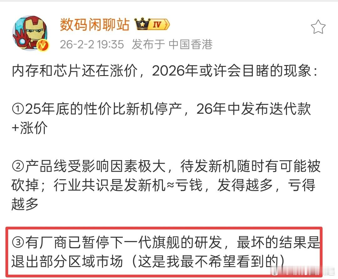 有厂商已暂停下一代旗舰的研发。。不过这明显不是国产Top5的大厂,华米OV耀排除后就