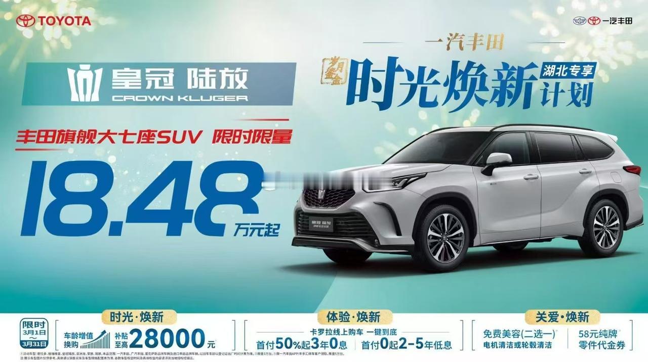 皇冠陆放,18.48万~~~这是去年三月份的促销海报!!!不晓得现在皇冠陆放卖多
