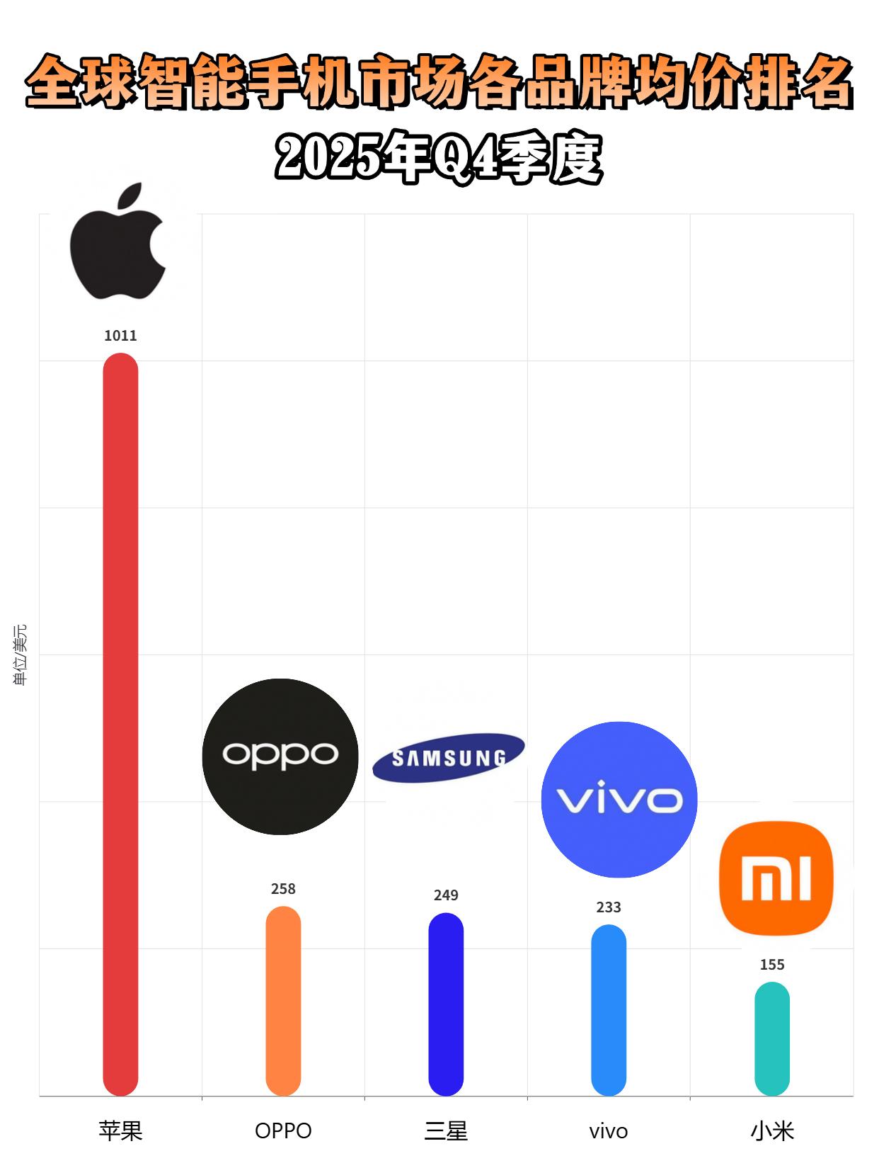 苹果是真狠啊,对比完数据心碎了 看最新公布的数据,去年第四季度全球手机市场,均价最高的果然还是苹果啊,领先其它厂商一大截,高端市场这块,苹果太哈人了 排名第二的居然是OPPO,三星第三,后面是vivo和小米 苹果是不仅在国内强,在全球市场也强,售价和销量都很强,难怪这么多厂商羡慕啊......