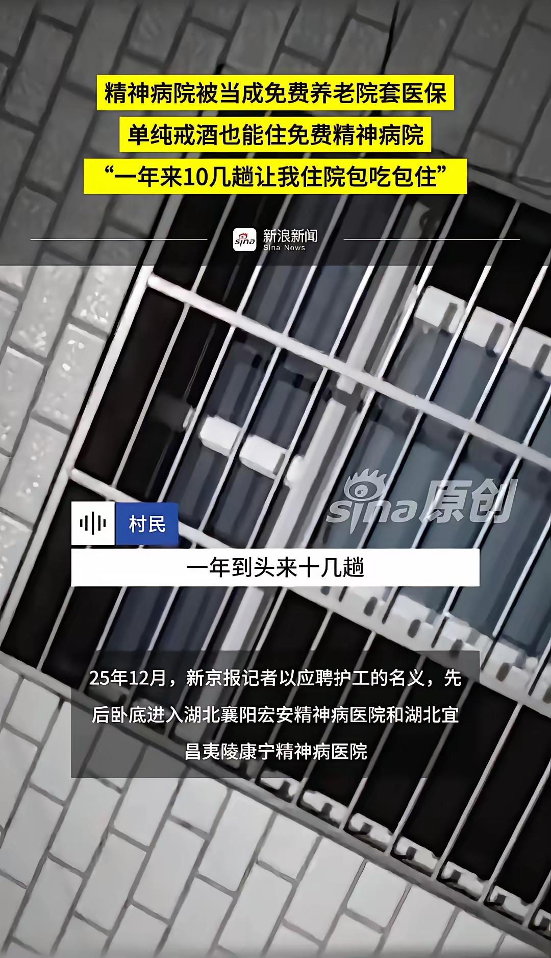 近日,记者卧底在湖北襄阳的精神病院,揭露了惊天大新闻! 这些精神病院打着幌子,派工作人员到乡下农村去,利用免费包吃包住,包养老的幌子,把一些正常的老人,或者一些年轻人,接到他们的医院,把他变成一个精神病患者骗取医保! 甚至就连医院的护工,保安都成了所谓的精神病人。 这哪里是治病的医院,分明是榨取医保救命钱的黑心牢笼!把健康人贴标签造病历,日赚百元的利益链,把医疗底线踩得稀碎,更可恨的是正常人进去就难出来,体罚羞辱成常态,弱势者成了他们谋利的工具。 更让人寒心的是,医院统一口径掩盖免费真相,连护工保安都成骗保道具,这背后是监管的层层漏洞,让黑心机构敢如此肆无忌惮。医保金是全民的保命钱,绝不能成不法分子的摇钱树,当地彻查不仅要揪出责任人,更要堵死监管漏洞,不然还会有更多人落入陷阱。 这件事也给所有人敲了警钟,你觉得该从哪些方面彻底斩断这种黑心产业链,守护好我们的医保钱?