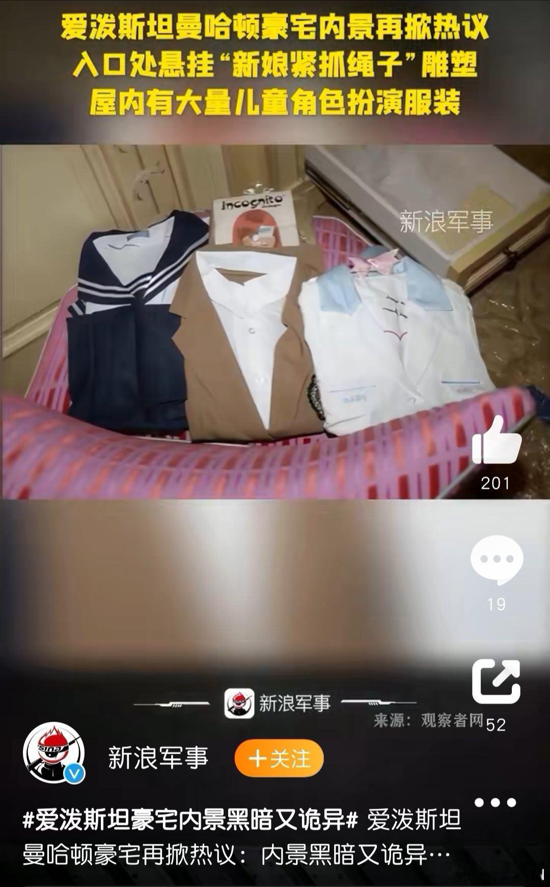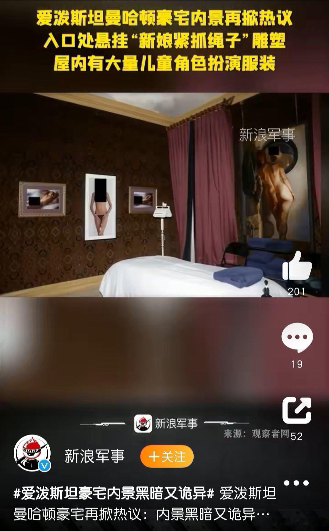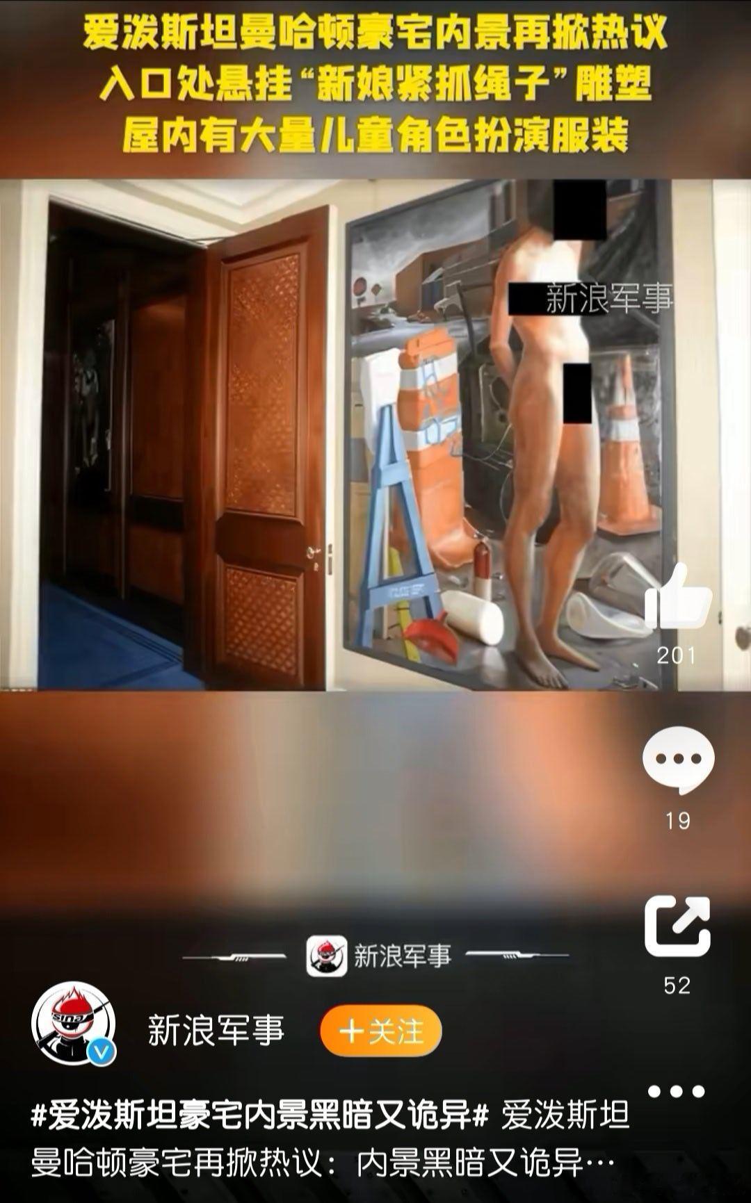 爱泼斯坦豪宅内景黑暗又诡异 看了一下是确实有一种说不出的恐怖感,特别是进门有个新娘子装扮的雕塑,感觉是有一种被虐情绪,唉!