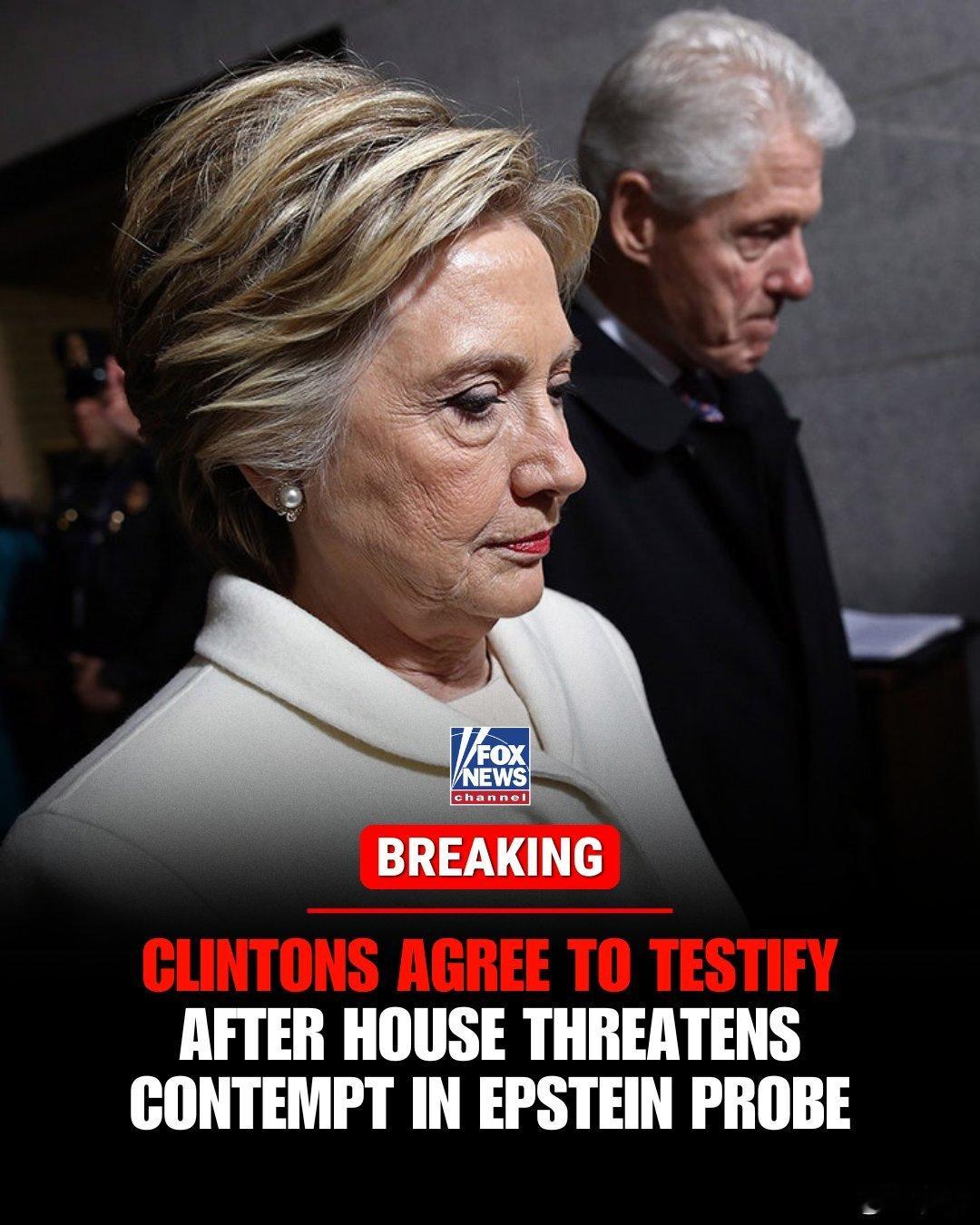 突发:美国前总统比尔·克林顿和前国务卿希拉里·克林顿同意在众议院监督委员会对杰弗里·爱泼斯坦的调查中作证,此前国会议员威胁用“藐视国会罪”对他们进行刑事处罚。克林顿夫妇同意在众议院对爱波斯坦的调查中作证