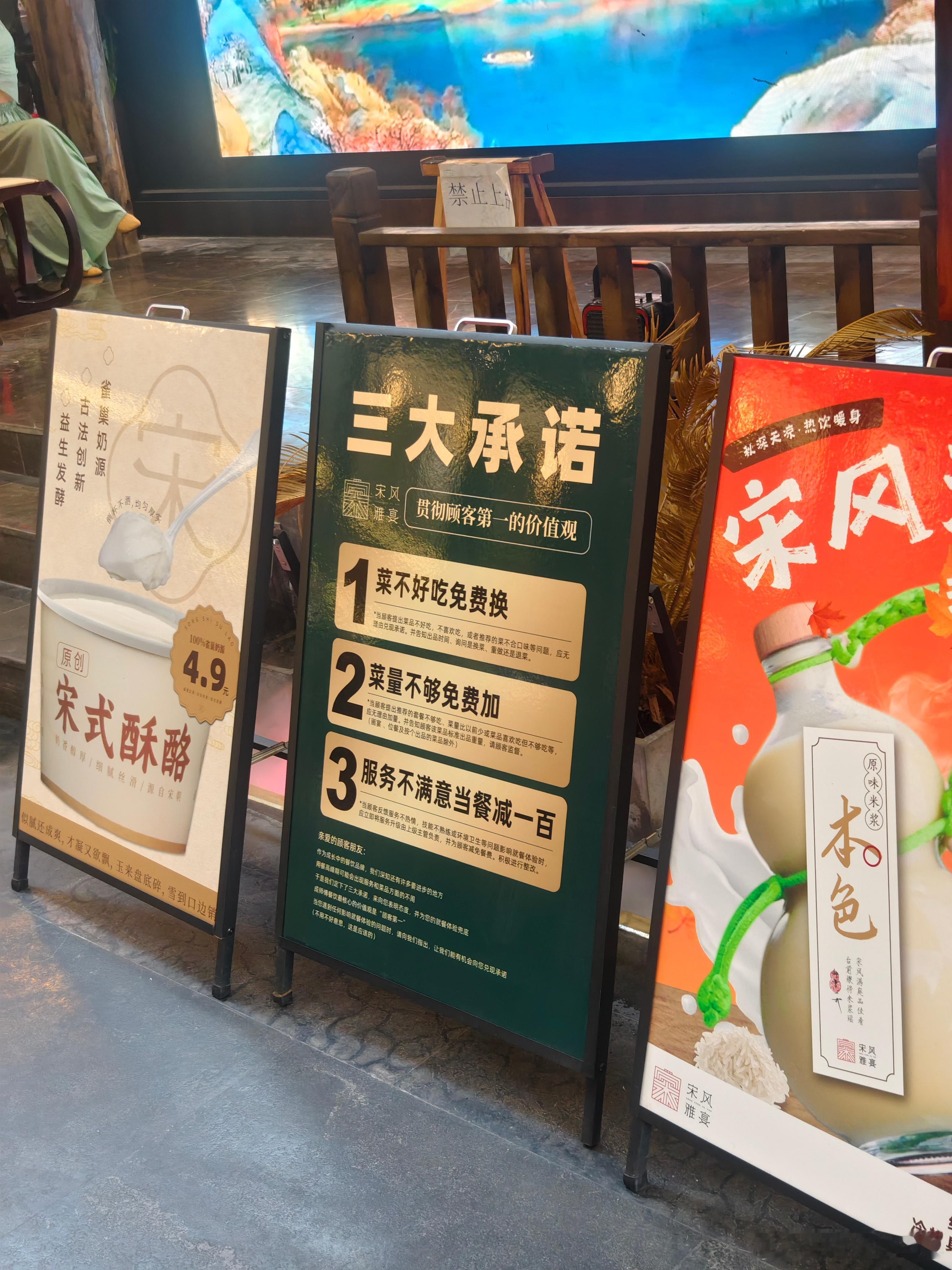 中午吃的宋风雅宴看到这摆在进门位置的牌子不得不说这老板做生意有魄力