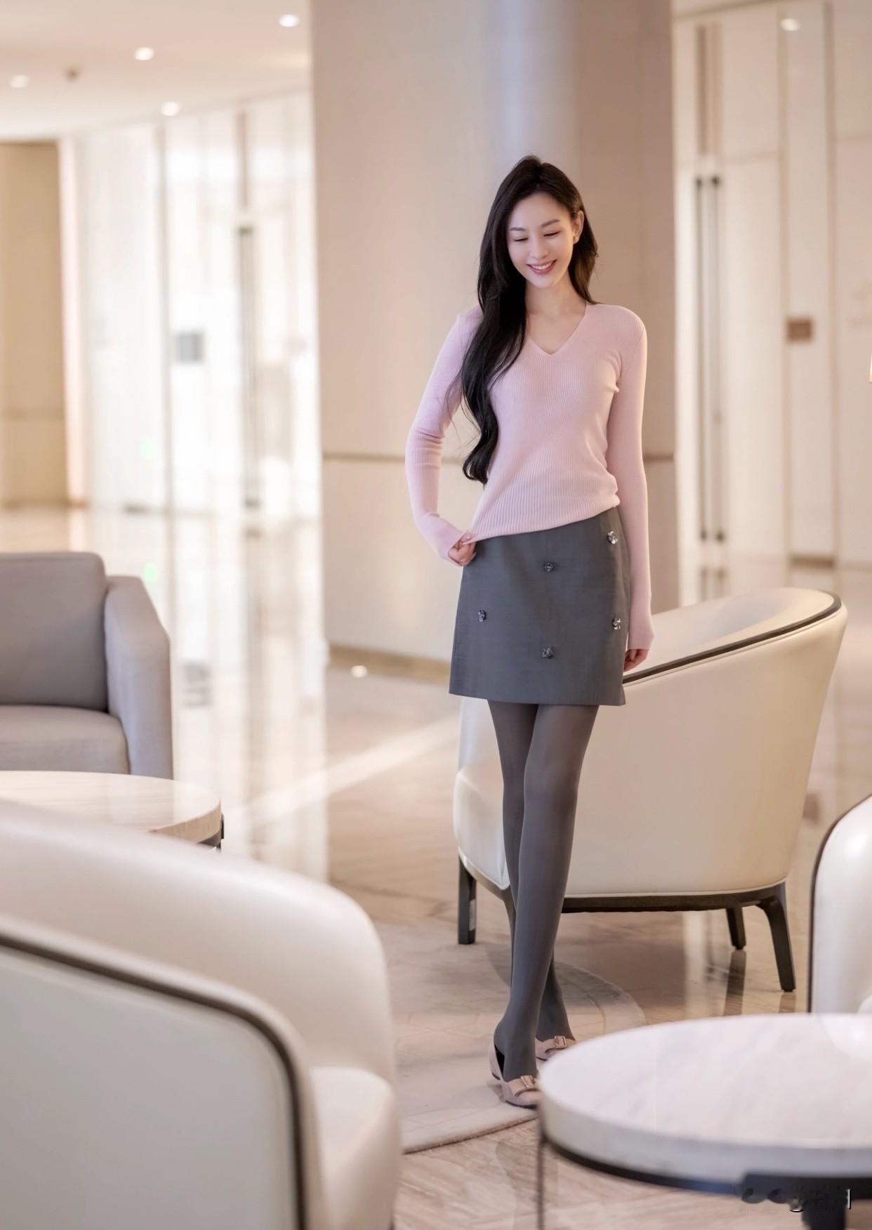优雅穿搭,自信微笑,时尚都市女性风范。