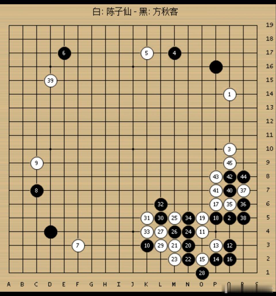看完有罪之身 之后忍不住扒拉了一下被删减的片段,有一场戏是陆鸣和三叔对弈。找了网友做的原局复盘,陈子仙和方秋客的弃子战术,据说聂卫平也学过这个打法。陈执白棋。一开始黑棋下的目外占角,目外特指(3.5)或者(5.3),一上来就是要打包围的,他的2和6就是占角。恰如侯军对付陆鸣,一开始就是把珊珊夏雪马德荣都做成围墙的。