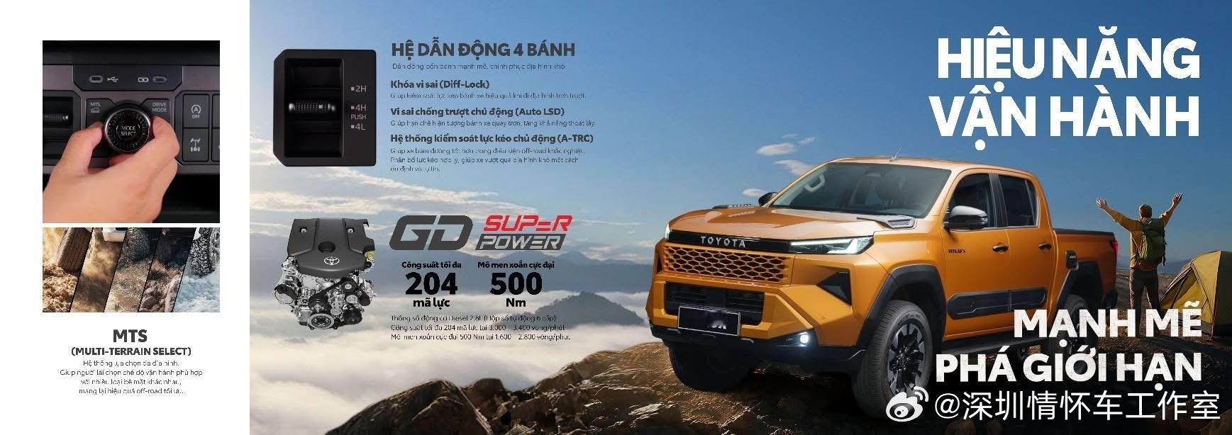 2026款丰田HILUX皮卡是第九代车型,于2025年11月首发,2026年正式上市。由澳洲主导开发外观由Toyota Design Australia设计,底盘、悬挂、转向经本地调校,被称为“史上最澳洲化的Hilux”。首次推出纯电版本:Hilux BEV是车系史上首款纯电车型,双电机全时四驱,59.2kWh电池,WLTP续航约257公里,载重715公斤、拖曳1.6吨,2026年4月欧洲率先上市。开启轻混普及:搭载2.8T柴油+48V轻混系统,提升平顺性与燃油经济性,保留1吨载重、3.5吨拖曳能力,2026年7月起在欧洲等市场推出。 安全与智能升级:获得ANCAP五星安全评级,标配AEB等主动安全系统,智能驾驶辅助能力大幅提升。全球销量新高度:上市后助力Hilux全球累计销量突破2700万辆,巩固“耐用皮卡标杆”地位。