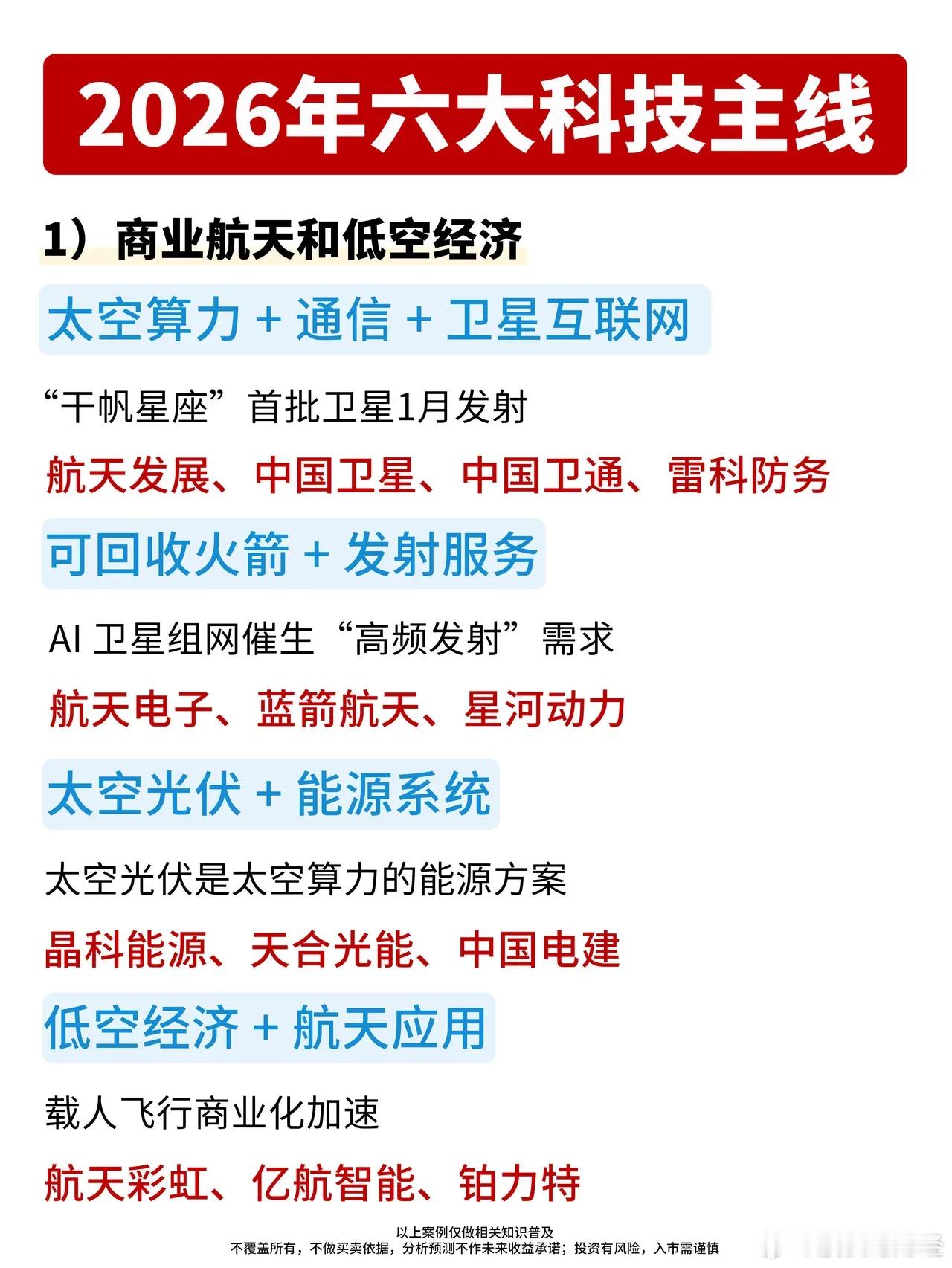 2026年六大科技主线出炉!1️⃣商业航天和低空经济太空算力、可回收火箭、太空