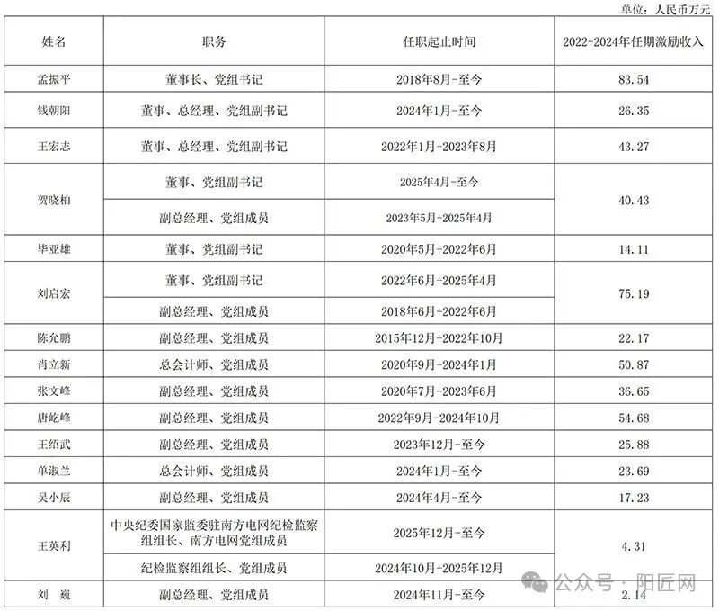 中国南方电网有限责任公司企业负责人2022-2024年任期激励收入情况