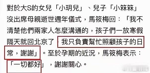 马筱梅回应大S儿女缺席大S雕像揭幕她的位置真的不回应也不行,回应也不好回应。只做自己应该做的足矣!