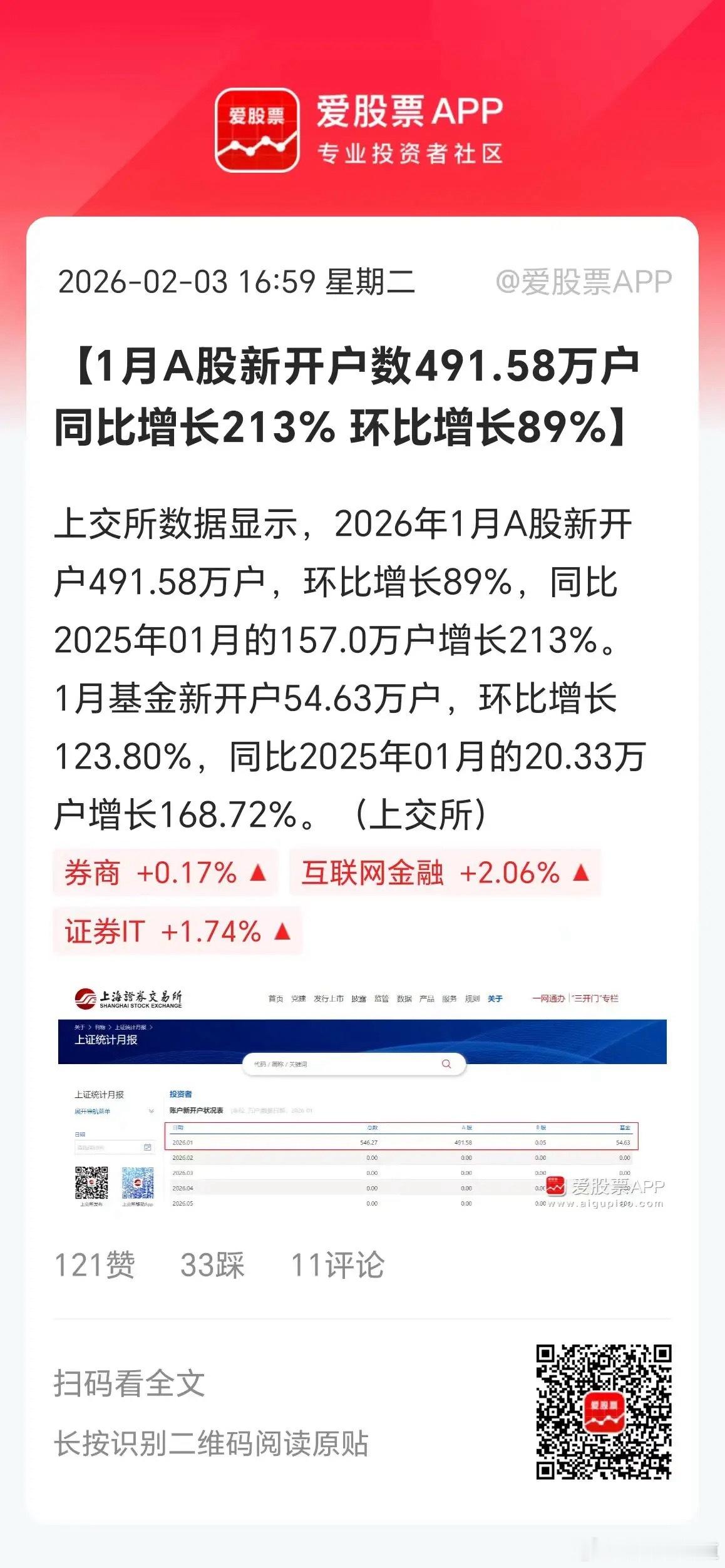 1月份A股新开户近500万,同比增长213%,环比增长89%!这个数据炸了啊。如果换算成业绩,跟“易中天”不相上下了。印花税猛涨,新开户数猛涨,但券商股就是不涨。最近甚至比白酒还惨,实在让人看不懂啊!这一轮A股行情最大的谜团,就是到牛市结束了,会不会券商还是打酱油呢。我们拭目以待了。