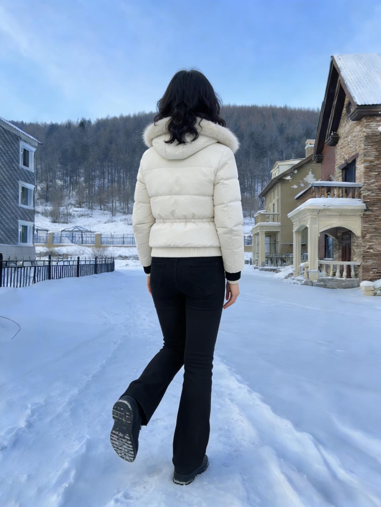 寒浦冰初合,林梢日半曛。 棉衣凝薄雾,纤指拂霜纹。 笑靥融残雪,眸光落远云。 徘