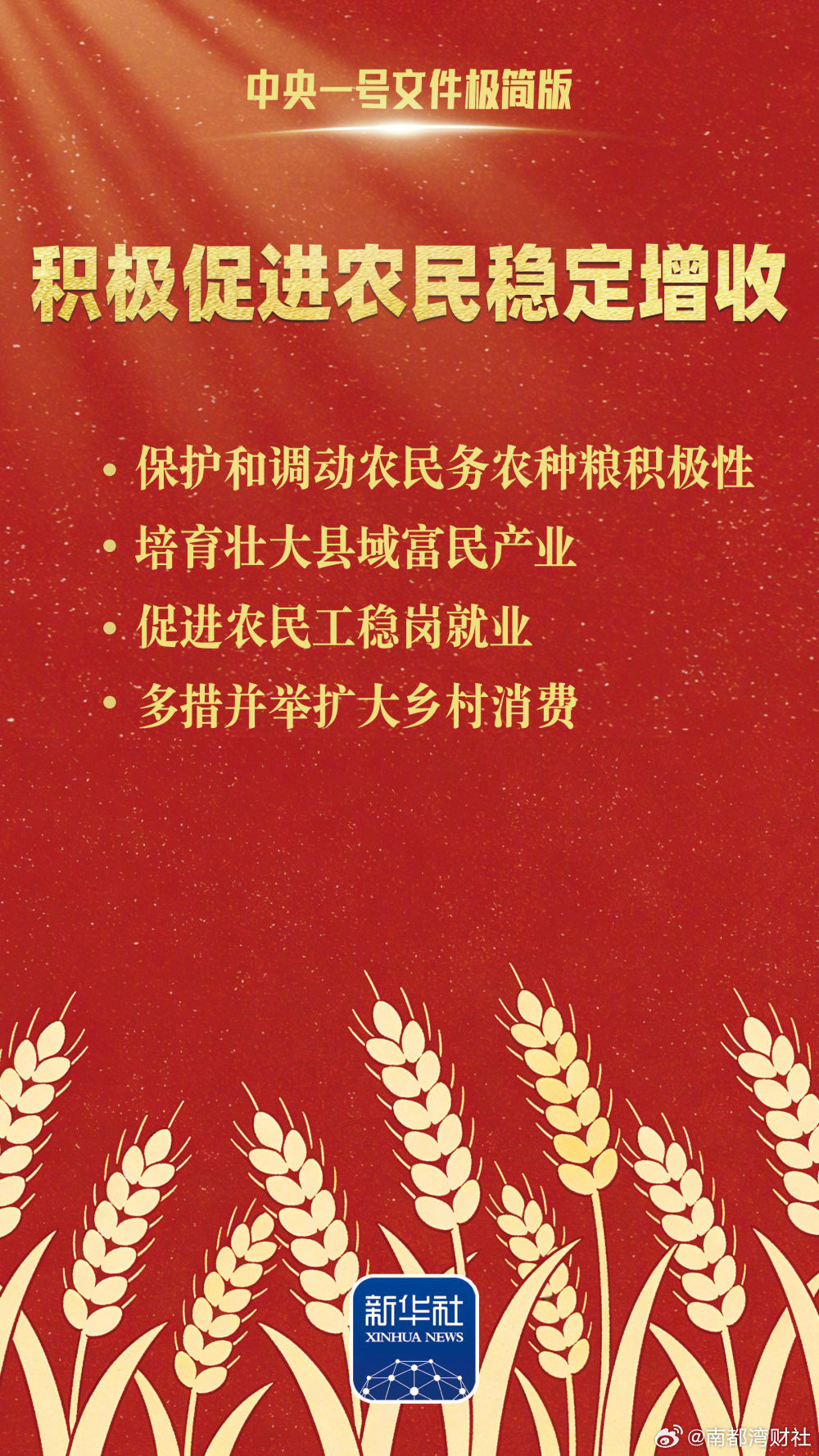 【#中央一号文件极简版来了#!】#一号文件极简版#026年中央一号文件2月3日发布,这是“十五五”首个中央一号文件。这份名为《中共中央 国务院关于锚定农业农村现代化 扎实推进乡村全面振兴的意见》的中央一号文件,对今年“三农”工作做了六个方面的重点部署。跟随我们整理的这份极简版海报,一起学习。