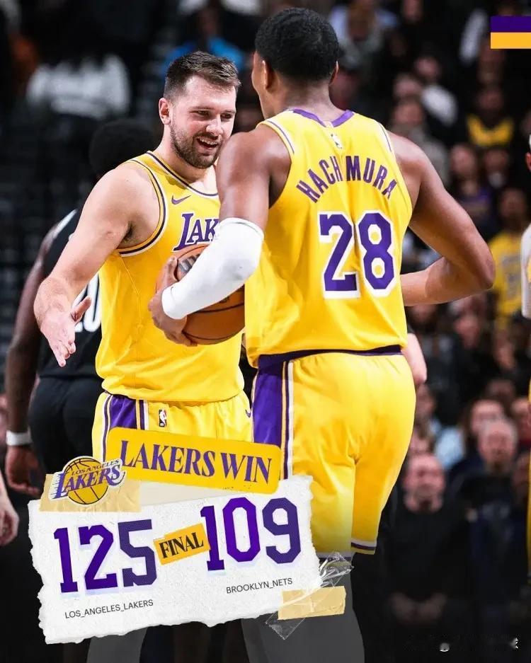 湖人官方真是太会来事了!今天湖人在客场以125:109轻松击败篮网,在比赛结束以后,湖人官方专门更新社媒晒出了一张赢球海报,值得一提的是,东契奇携手队友八村塁登上了球队的赢球海报。 坦白说,以东契奇和八村塁在本场比赛中的表现来看,他们完全配得上这份殊荣。东契奇作为球队的主力砍下24分6篮板5助攻,而身为替补的八村塁得到5分3篮板,他们都为球队的获胜贡献了自己的力量。
