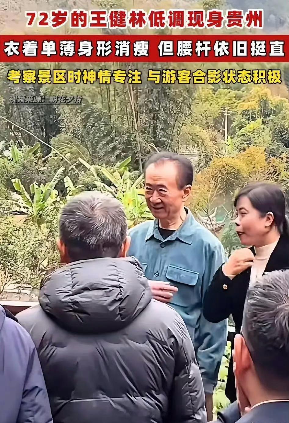 72岁王健林低调现身贵州72岁的王健林低调现身贵州,衣着单薄身形消瘦,但腰杆依旧挺直,考察景区时神情专注,与游客合影状态积极