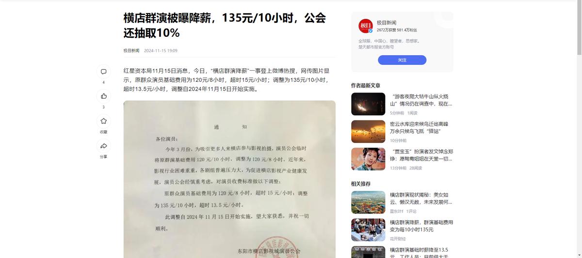 可自11月15日起,横店群演的日子愈发艰难。时薪从原本的15元一下子降到了13.5元,这还不算完,还要被工会抽取10%,如此一来,每月到手的收入简直少得可怜。