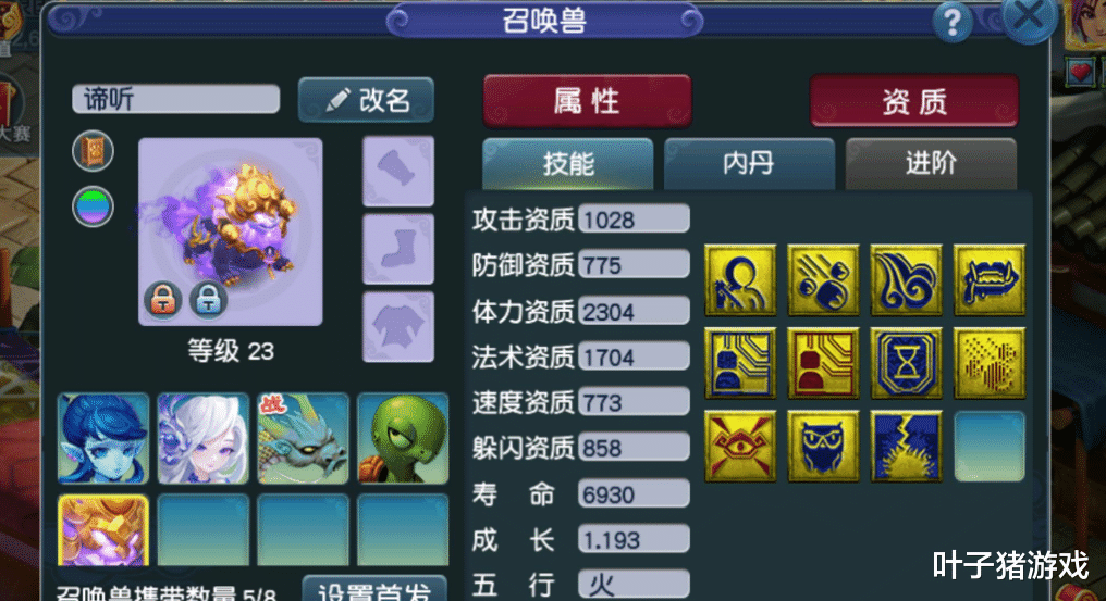 结果没让小伙伴失望,他斩获了11技能观照胚子。现在唯一瑕疵就是资质面板过低,跟大海龟没区别,只好往法系路线打书,再养两年元宵了。