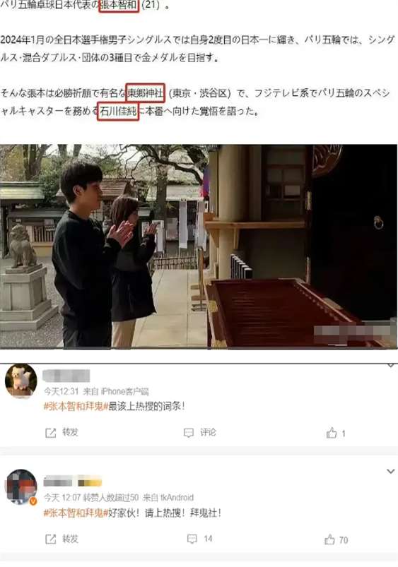 首先,让我们聚焦于张本智和在巴黎奥运会期间的举动。这位备受瞩目的日本选手,竟然在赛场上之外,选择了参拜东乡神社。这一行为,无疑是对历史的一次极大不敬。东乡神社作为日本军国主义的象征之一,承载着二战期间无数无辜民众的痛苦回忆。张本智和的此番举动,无疑是在揭开历史的伤疤,让那些曾经遭受苦难的人们再次感受到心痛。