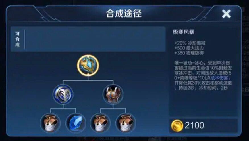 2、不错的合成途径极寒风暴由雪山圆盾和守护者之铠组合而成。这两者在前期都算是不错的小件,守护者可以降低对面射手的攻速,有效限制持续伤害。一些玩家喜欢在上路抗压的时候,做一手守护者之铠来增强防御,有时候玩家会用来当过渡装使用。至于雪上圆盾,最大的作用那就是冷却时间,它的好处自不用多提。尤其是对于孙膑这样需要频繁使用技能的辅助。
