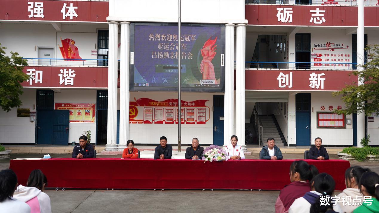 10月7日上午,刚刚夺得杭州亚运会赛艇项目女子四人双桨冠军的漯河姑娘吕扬,带着代表运动员最高荣誉的金牌,回到母校——漯河市体育运动学校,和学弟学妹们近距离交流互动。漯河市体校全体师生参加,活动由校党支部书记王广华主持。