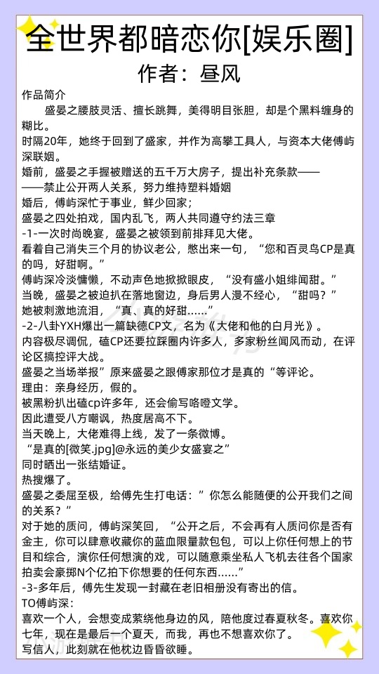 20.《全世界都暗恋你[娱乐圈]》 作者:昼风 //字数:41w