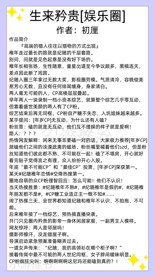 07.《生来矜贵[娱乐圈]》 作者:初厘 //字数:25w