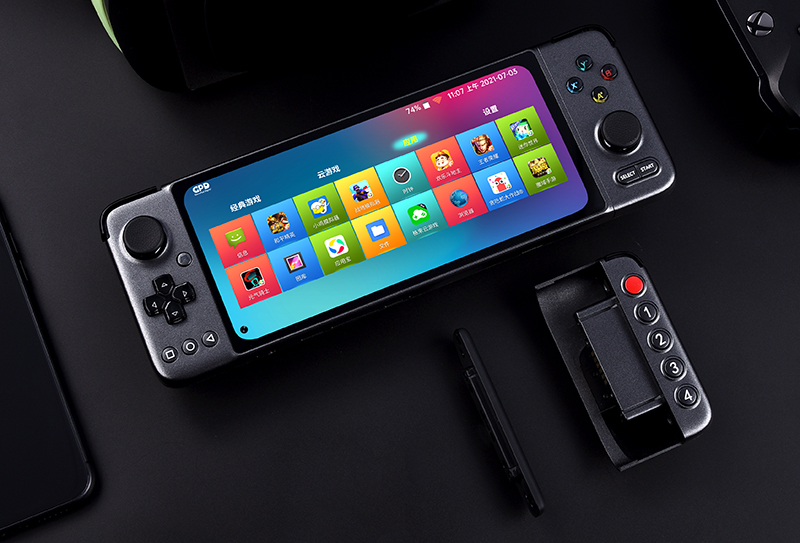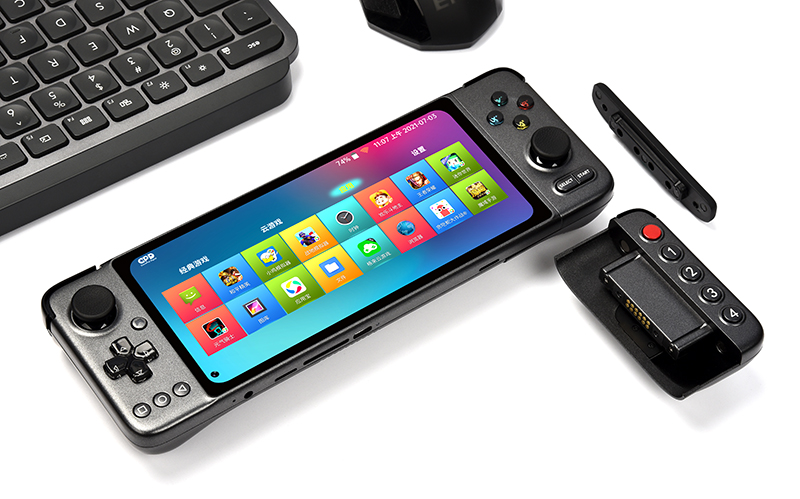 GPD官方曝光了一组真机照片,这款名为GPD XP的全球首款“安卓游戏掌机”定于2022年1月上市,最突出特点是可拆卸更换式右侧磁吸手柄模块(包括全按键映射手柄、半按键映射手柄和Xbox / PS3 手柄模块),可以通过快捷磁吸更换为不同的手柄组合模式,即换即用无需充电,独有按键映射,堪称游戏党的辅助利器。