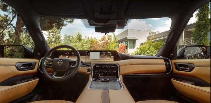 走进车内,全新一代日产途乐还标配双12.3 英寸液晶屏幕,顶配车型还配备双14.3英寸樱木镀铬饰条搭配HUD抬头显示,营造出强烈的豪华氛围。值得一提的是,中控屏下方依旧保留了大量的实体按键,还是便于车辆的盲操。除此之外,新车还采用了电子换挡,并且全系标配自动远近光灯、盲点监测和车道偏离警示等功能,顶配车型还配备Pro Pilot 2.1 驾驶辅助系统,智能化程度还是很高的。