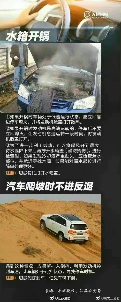 【最实用的开车紧急避险手册】开车路上,万一遇到紧急情况,如何处理?戳图学习最实用的开车紧急避险手册↓↓高速爆胎、刹车失灵、车辆自燃、侧滑、翻车、转向失控、不进反退……化险通通有“技”可循! (人民日报)