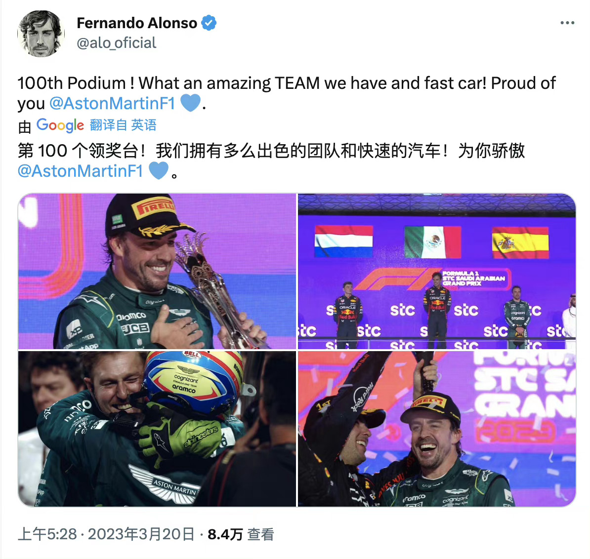 2023F1沙特大奖赛赛后阿隆索被加罚10秒!从而导致丢掉了P3成绩!!!!在领奖台后,得知自己被罚后,很豁达的表示:“我不在乎(失去领奖台),我已经完成了比赛庆祝和所有事情,赞助商露出笑脸,我不在乎了。FIA有30圈时间可以去回看的。”并第一时间给了后千斤顶技师一个安慰的抱抱!或许,这就是伟大车手的胸襟!我想说,2023赛季还很长,3月底澳大利亚站见!