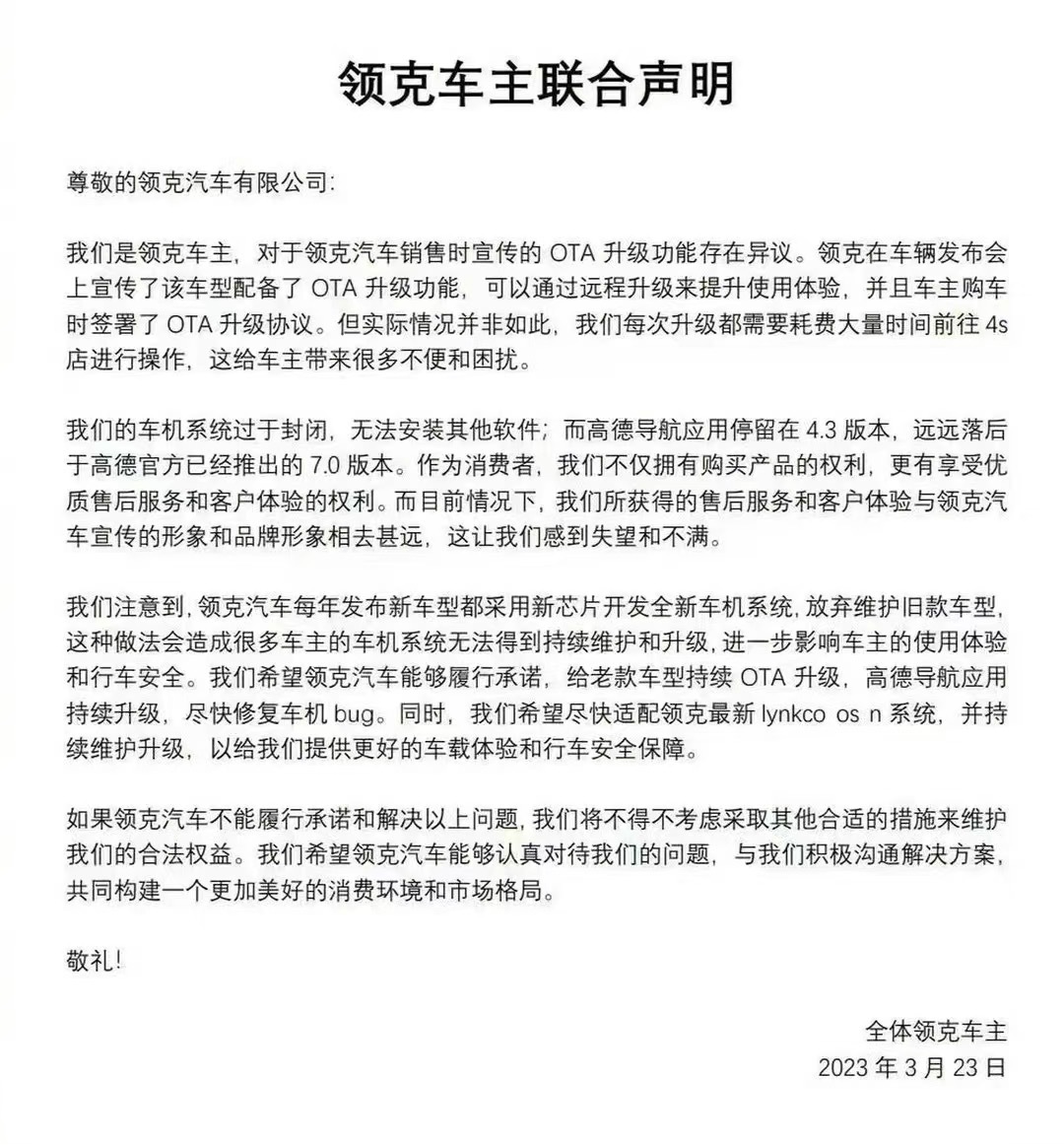 今天领克汽车在发布全新中性SUV领克08,相信大家最近对这款新车的车机非常感兴趣,新车将搭载与魅族联合研发的新车机系统,对于老车主而言绝对是好消息,谁不想自己的车机体验感和性能能提升的更好一些,而就在昨日领克也给车主也发了一份对于OTA升级功能异议的说明,也看得出领克想给车主们提供更好的服务体验!但是,实际目前不仅是领克,吉利品牌几十款车型也是很多车机系统,3.0时代的那些车型很多车机系统已经很不用了,甚至有点落后了,老车主们怎么看?