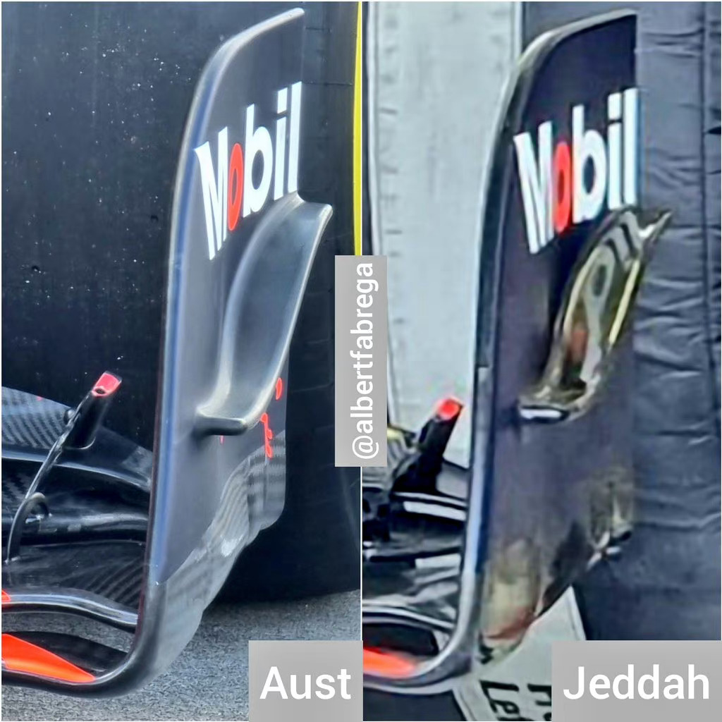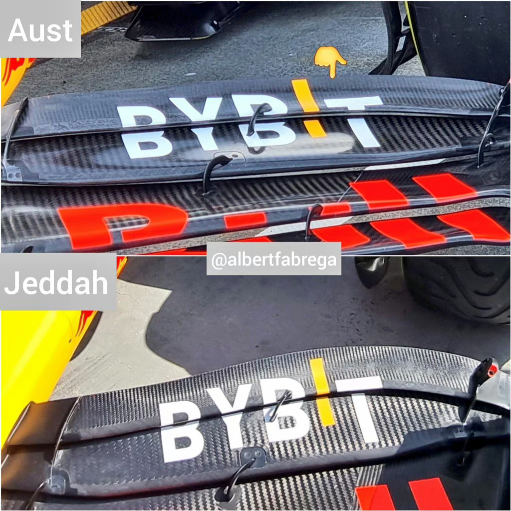 本周阿尔法罗密欧车队新的前鼻锥设计;还有红牛车队的前翼和端板升级(via Albert Fabrega)