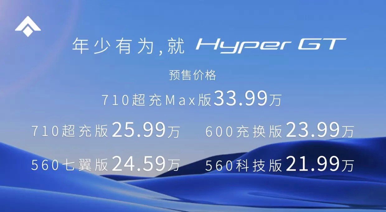 今晚,广汽埃安旗下昊铂Hyper GT 车型正式开启预售,预售价格区间为21.99-33.99万元,详见下图。新车将会在本届上海车展上登台亮相,届时感兴趣的朋友们也可以现场对其进行体验。结合此前的消息,新车将会在6月份内上市,并将于年内交付。其他方面,官方宣布广汽埃安全新电池、电机将会于年底量产。