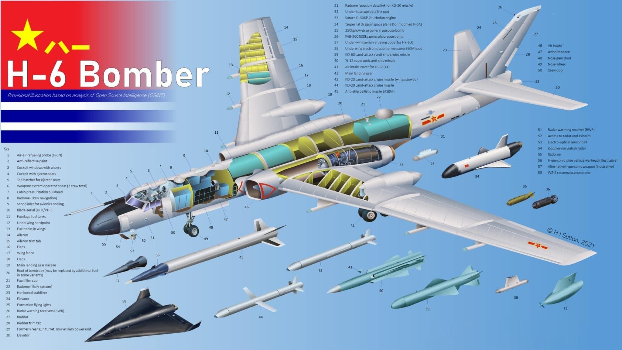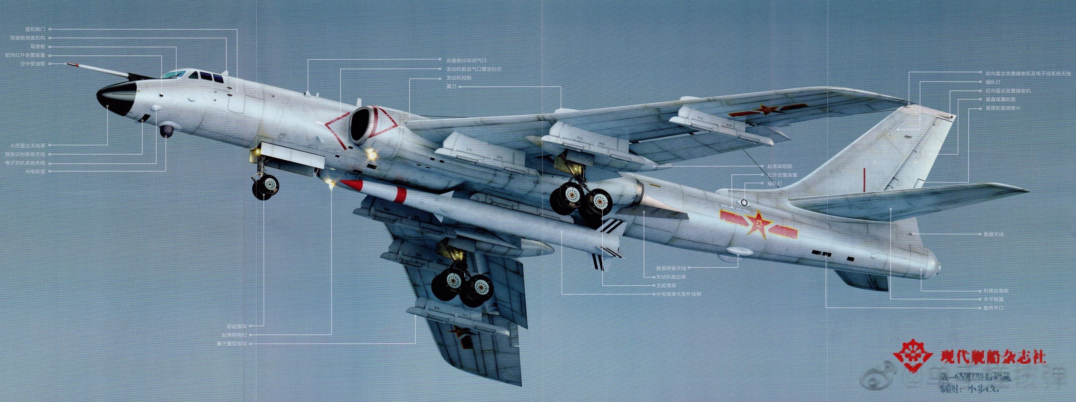 比如轰-6K/N可以挂载至少5枚鹰击-12反舰导弹或者长剑-20巡航导弹(图2为P图),也可以挂载2枚鹰击-21空射弹道导弹(去年珠海航展上展示的那款),另外还可以挂载一枚采用二级发动机的某型空射远程高超音速导弹,此时轰-6K/N+该型高超音速导弹应该已经可以打到夏威夷了……[并不简单]#武器装备#