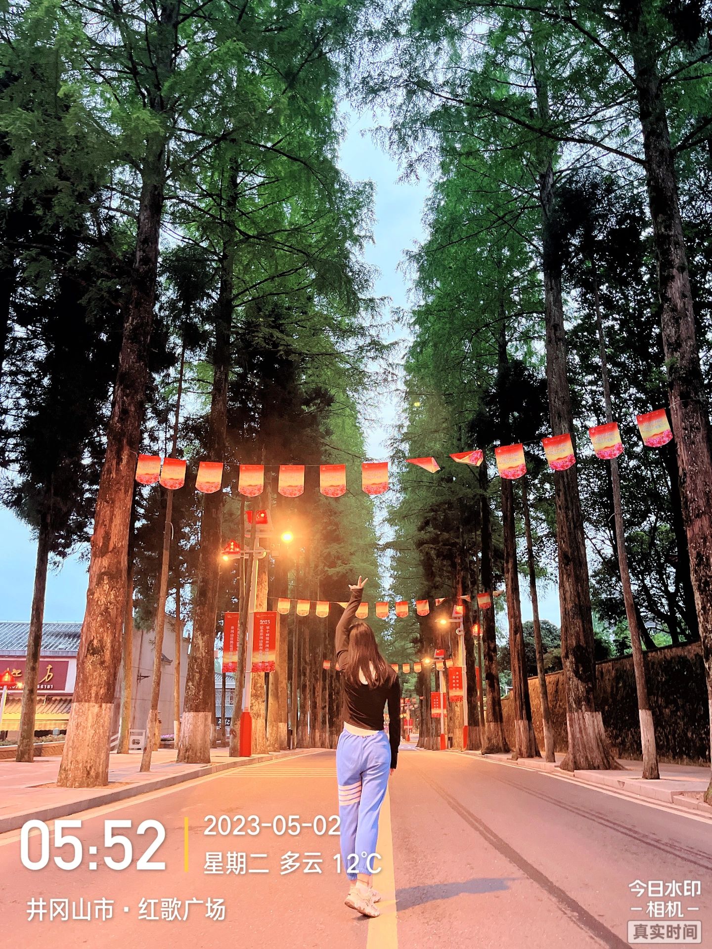 第二天。赶早去茨坪镇充了电,六点钟。充电桩没有人。