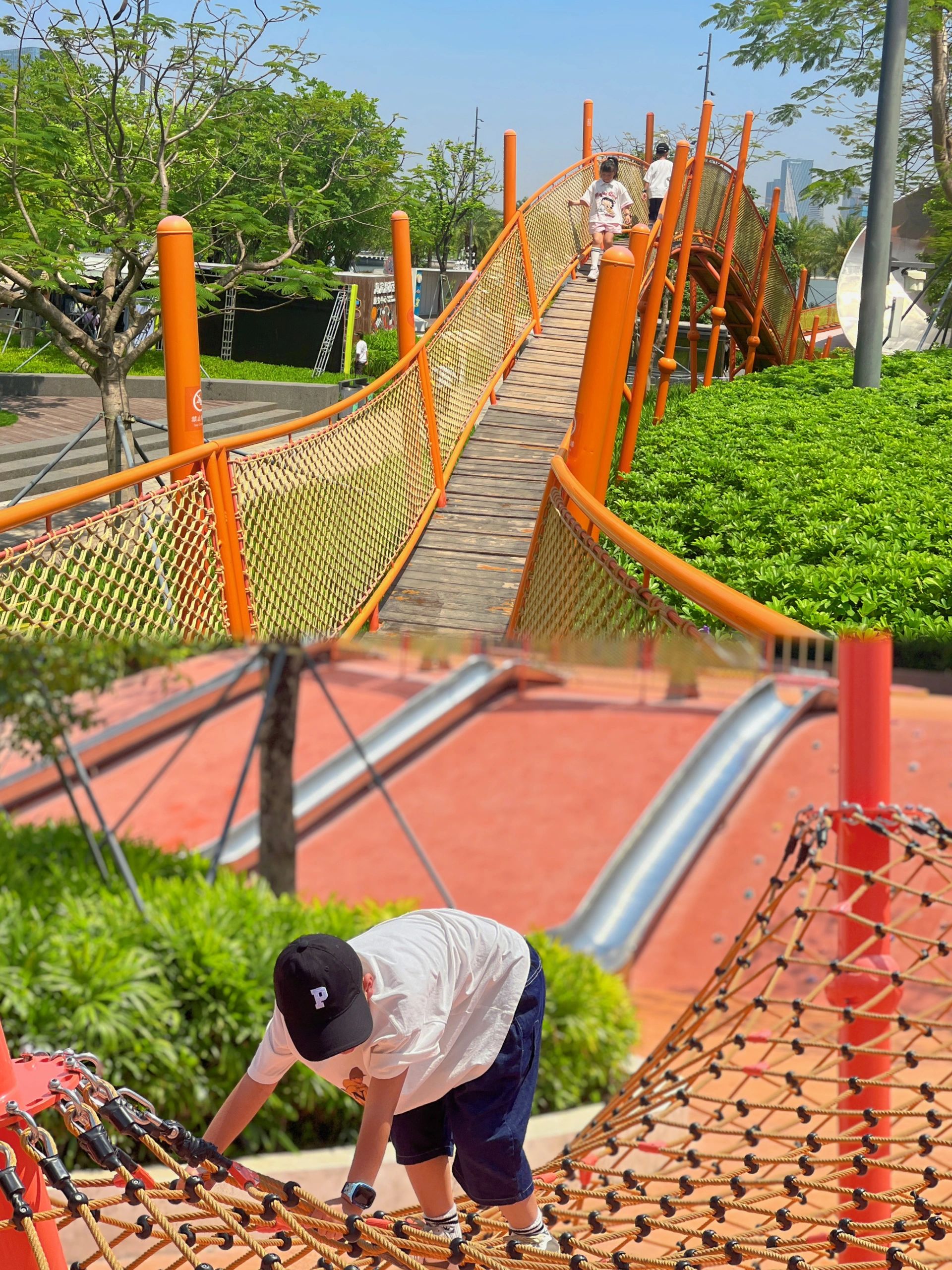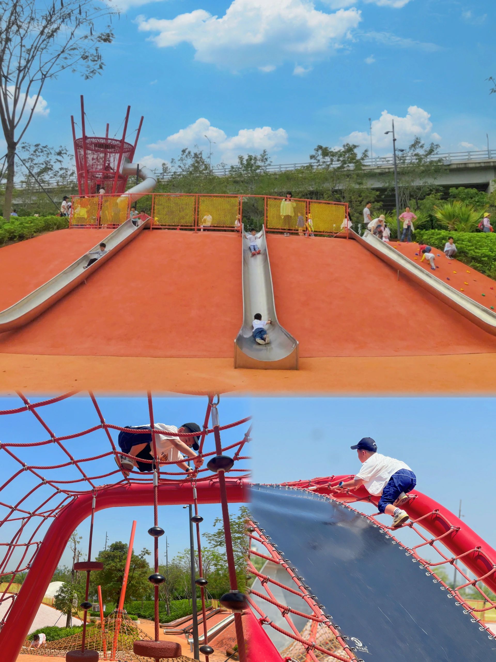 有巨型喇叭滑梯 各式攀爬架 高低起伏的绳索桥 花式荡秋千……