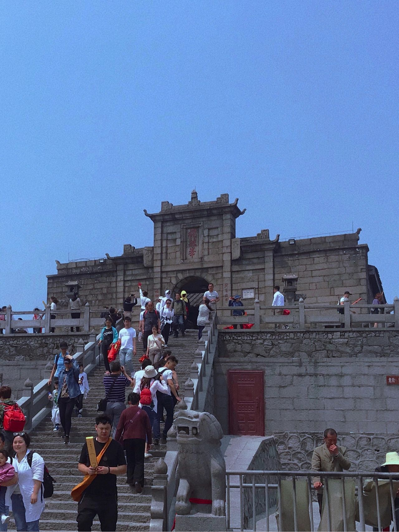 我们当时索道没开,下车后走了一段只能徒步的柏油路,坡度很斜不好走,还有一些阶梯,途中路过南天门牌坊,大概爬半小时,最后到达祝融峰,从祝融峰上祝融殿