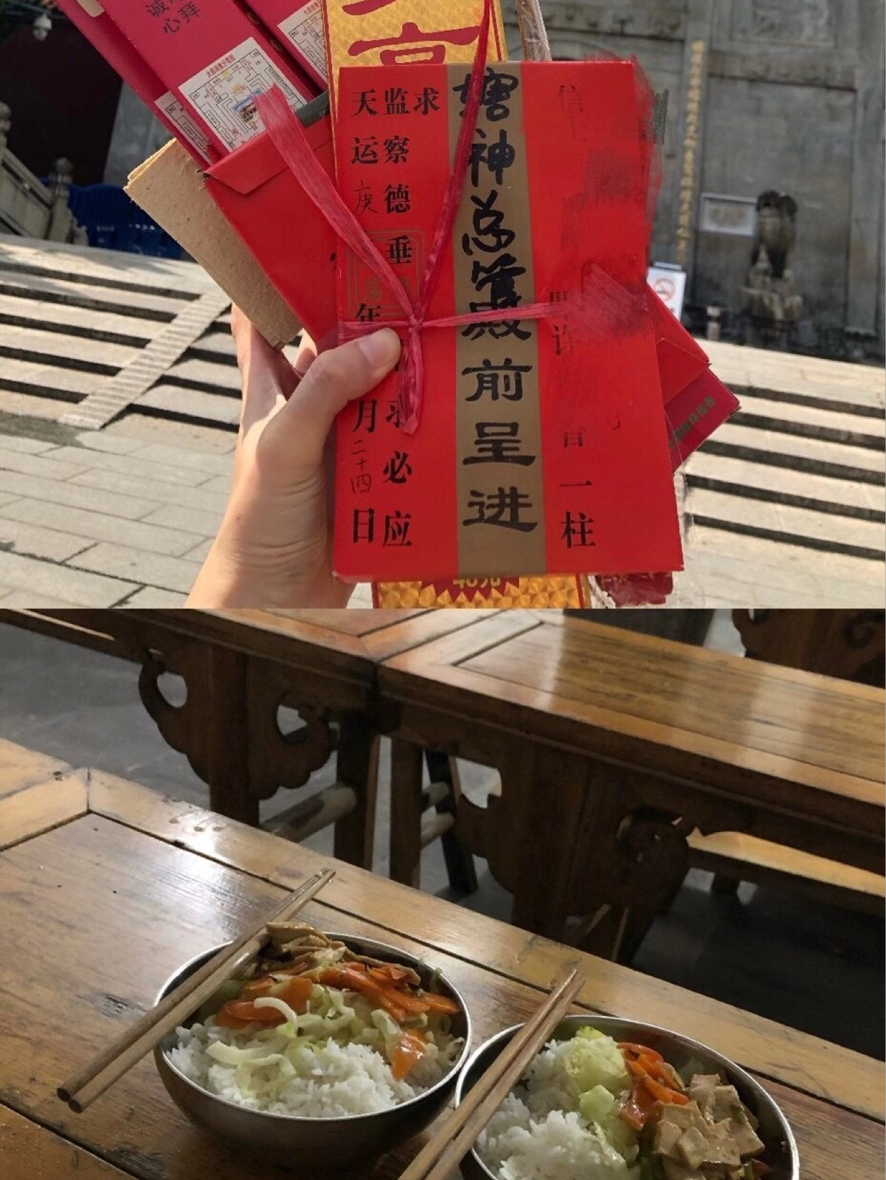💡请愿上香Tips :【南岳大庙】下汽车就有更多阿姨叫卖香火 ,虽然说着只要几块钱 ,但这里一定要注意啦‼️
