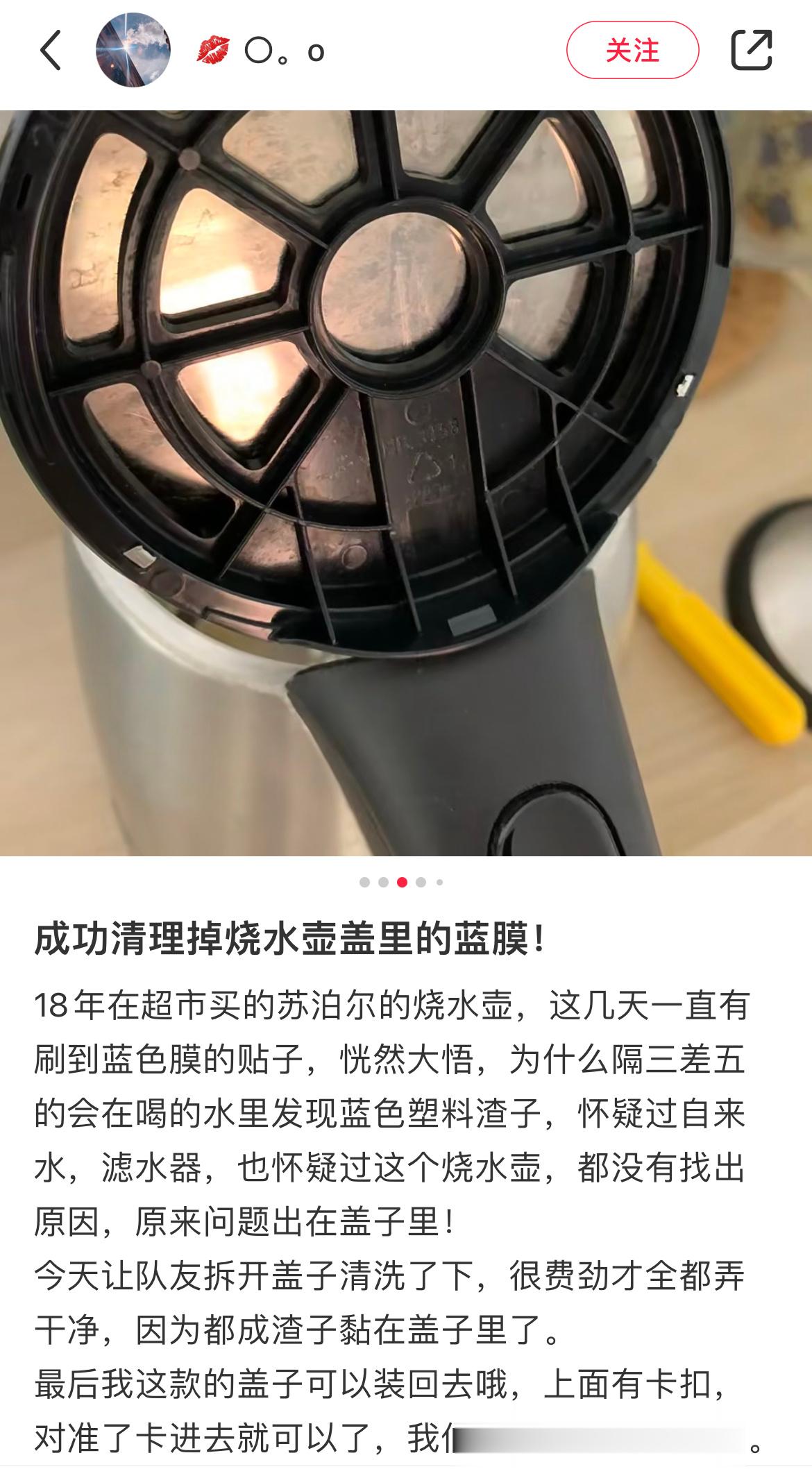 嗨💡有多少人不知道烧水壶顶盖内侧是有蓝膜的!!塑料膜长期被高温蒸熏后,滴落的水再被饮用真的很不安全!!!码住这条「烧水壶的蓝膜如何清理」