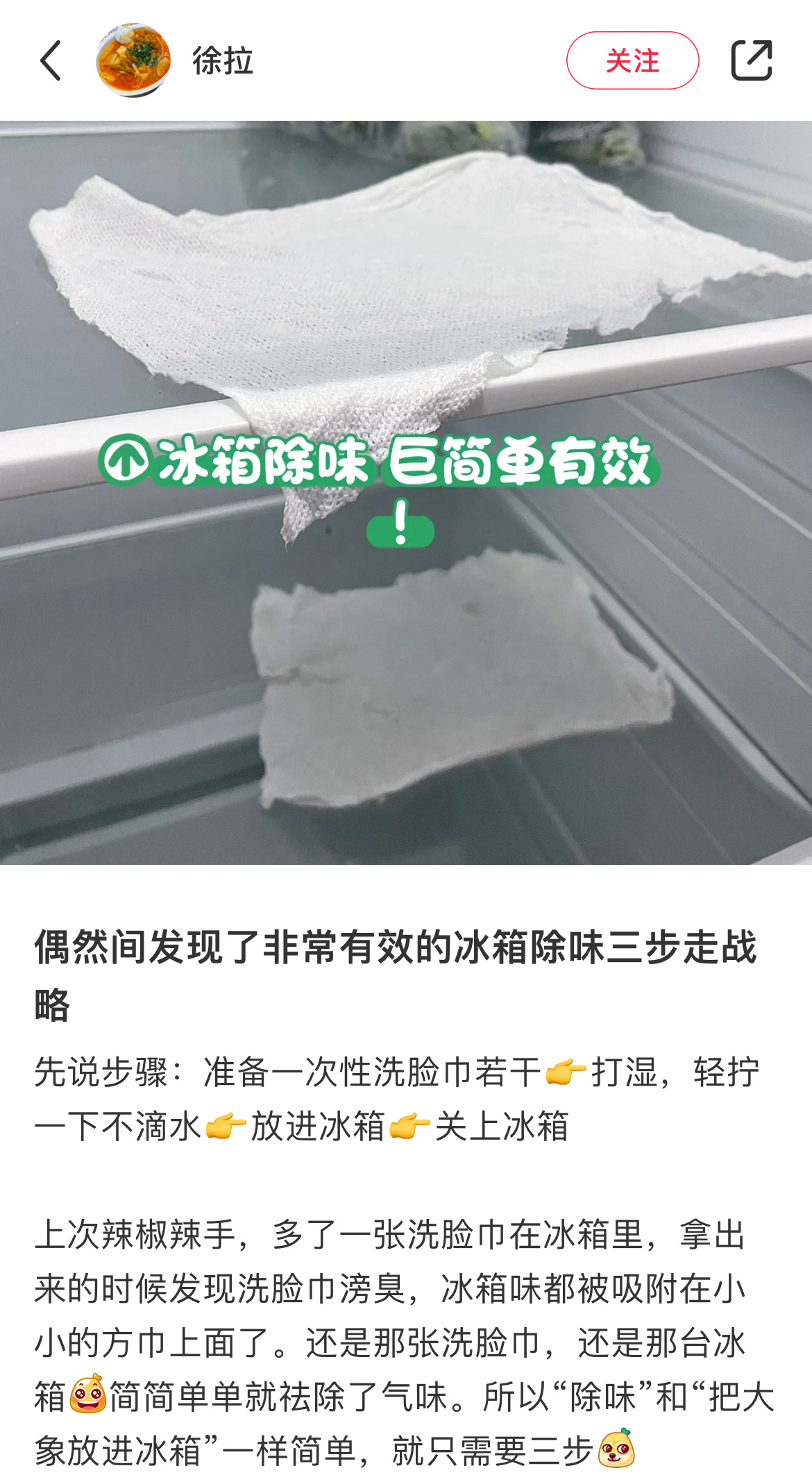 嗨💡冰箱使用时间长了,偶尔有异味怎么办?教大家一个敲简单的方法,一根火柴or一张打湿的面巾纸,就可以快速祛除异味!!!码住这条「冰箱除异味小技巧」